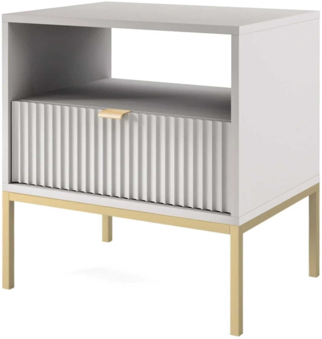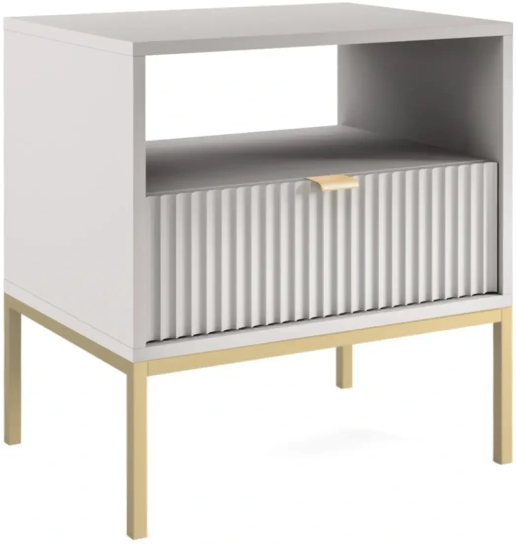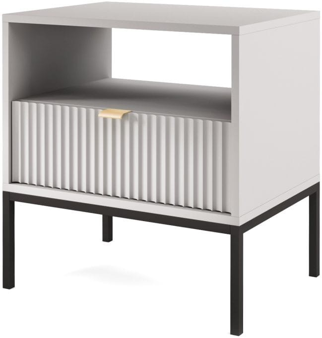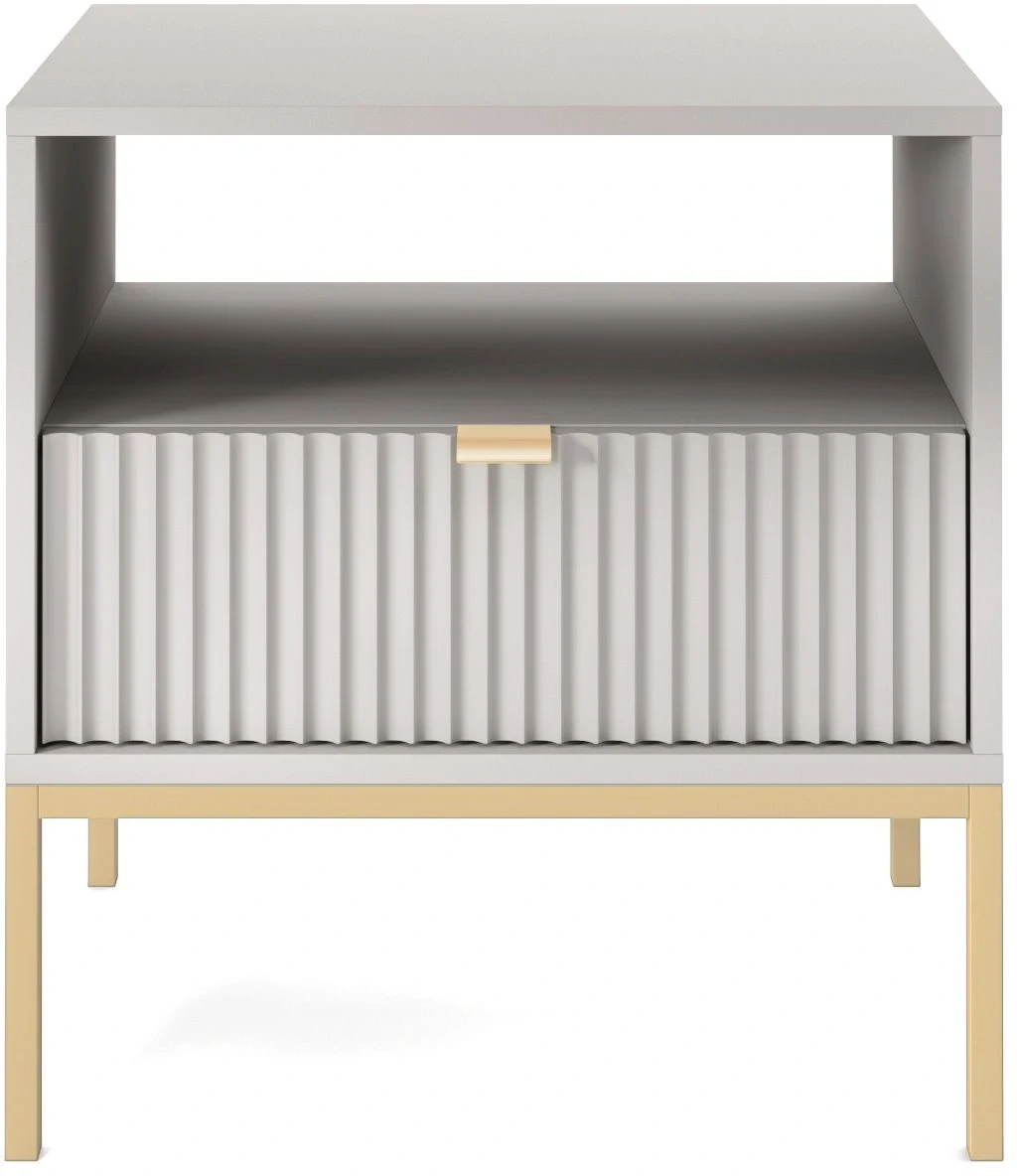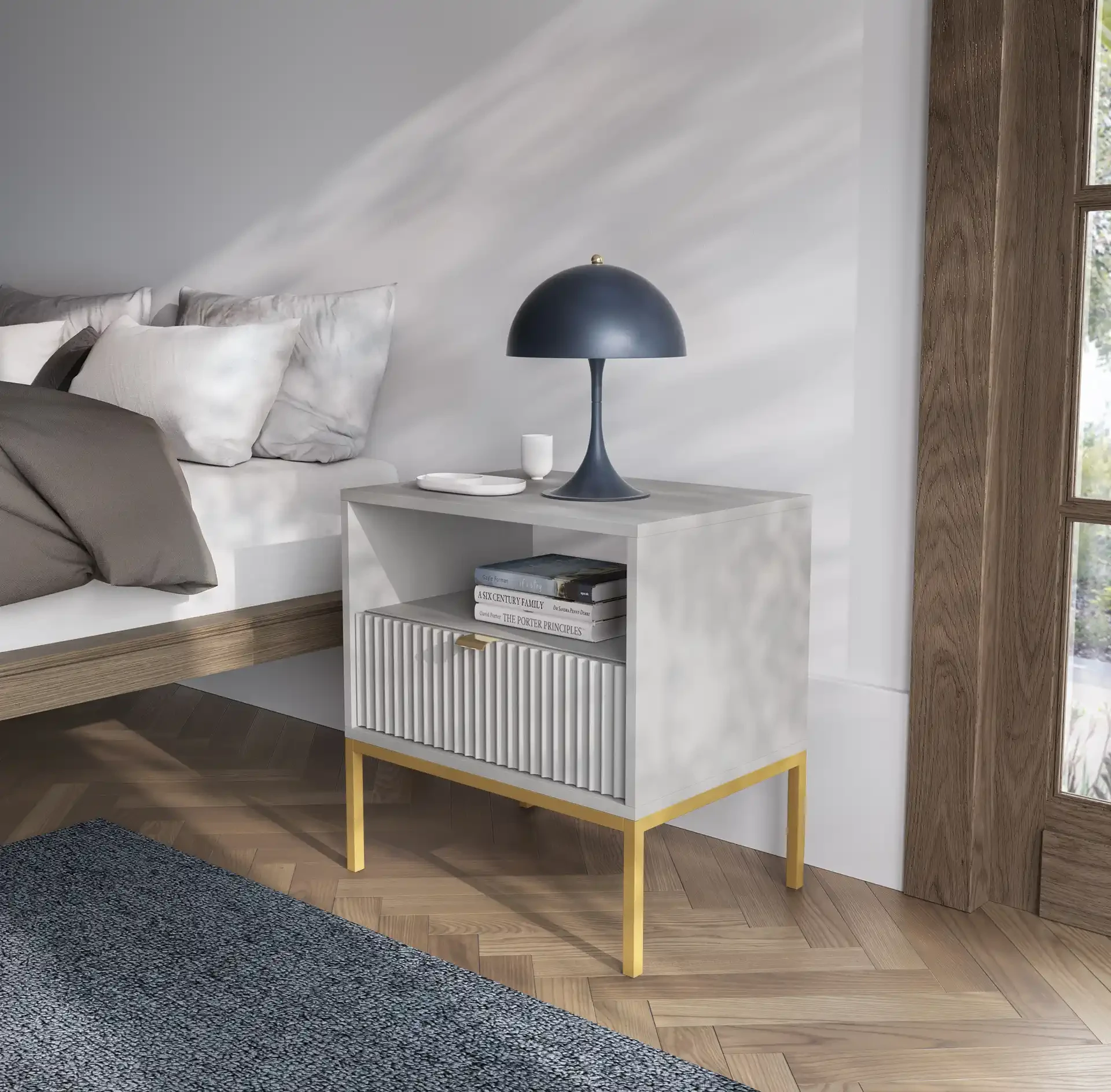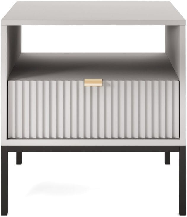 Szafka nocna Nova, to nowoczesna propozycja mebla do sypialni. Szafka została wyposażona w pojemną szufladę, która stanowi doskonałe miejsce do przechowywania podręcznych rzeczy takich jak ładowarki, kosmetyki czy inne drobiazgi. Nowoczesny, minimalistyczny design połączony z szarym kolorem sprawia, że szafka nocna Nova prezentuje się niezwykle stylowo i nowocześnie. Mebel został zaprojektowany i wykonany w Polsce co jest gwarancją jakości - Wspieraj