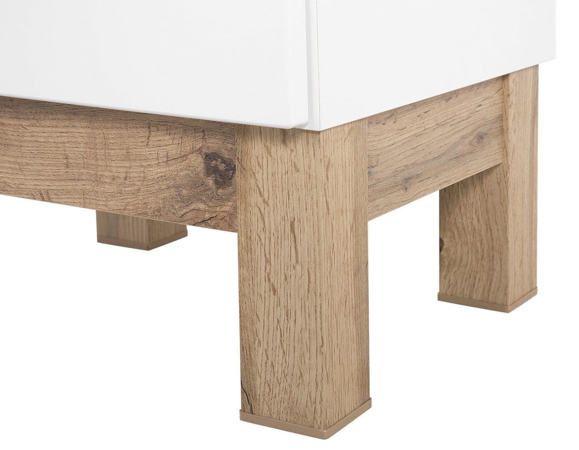 Szafka pod umywalkę BALI 821 to stylowa propozycja z kolekcji mebli łazienkowych Bali cechująca się stylową i prosta formą. W kolekcji znajdziemy meble w różnych rozmiarach, dzięki czemu uda się z nich skomponować zestaw pasujący tak do większych jak mniejszych łazienek. Dzięki zastosowaniu białych frontów z MDF, frezowanych uchwytów oraz mechanizmów cichego domyku otrzymujemy kompletny produkt łączący w sobie trwałość, piękno oraz wygodę użytkowania. Detale w kolorze dąb wotan dodają meblom przytulnego uroku. Szafka pod umywalkę BALI 821 z pewnością przypadnie do gustu osobom ceniącym niebanalne rozwiązania.