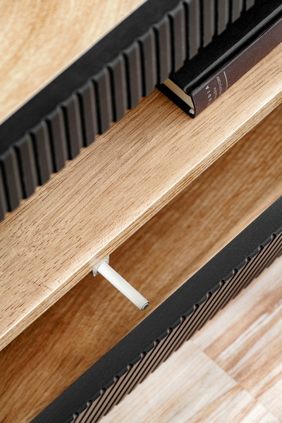 - Funkcjonalne schowki - praktyczne miejsce do przechowywania sprzętu RTV, kabli i akcesoriów.