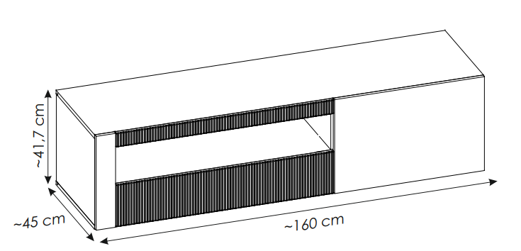 - szerokość 160 cm x wysokość 42 cm x głębokość 45 cm