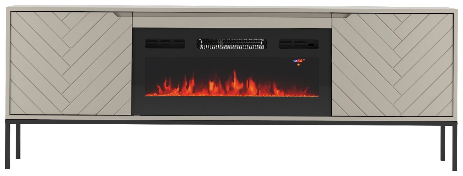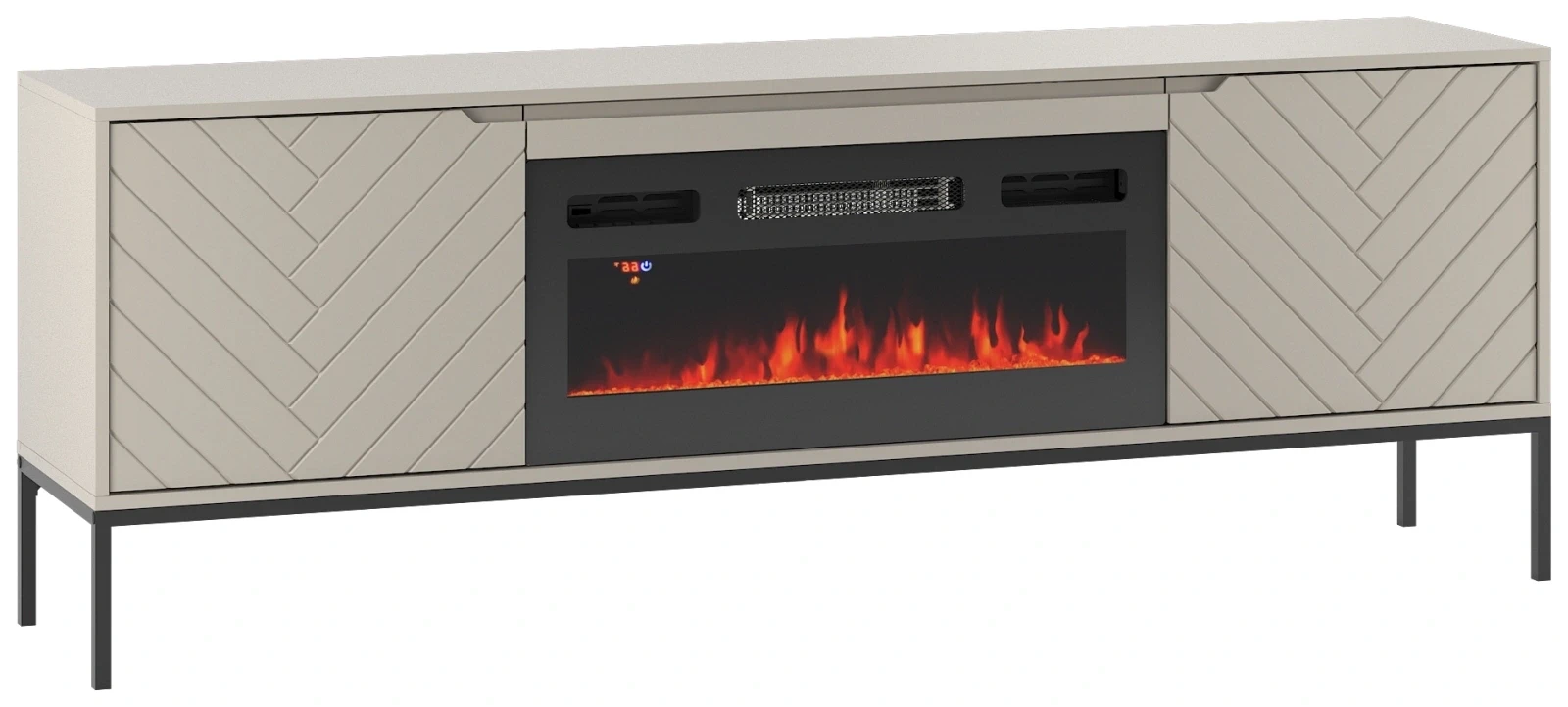 Szafka RTV Aspen II 180 cm dwudrzwiowa z kominkiem elektrycznym do salonu kaszmirowa