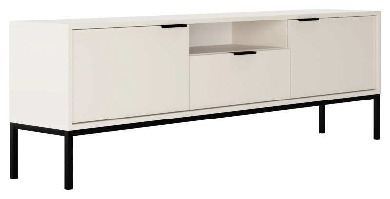 Szafka RTV Austin 175 cm dwudrzwiowa z szufladą do salonu biały/czarny