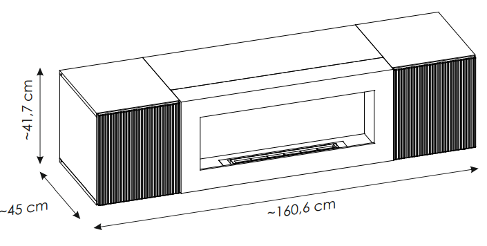 - szerokość 160,6 cm x wysokość 41,7 cm x głębokość 45 cm
