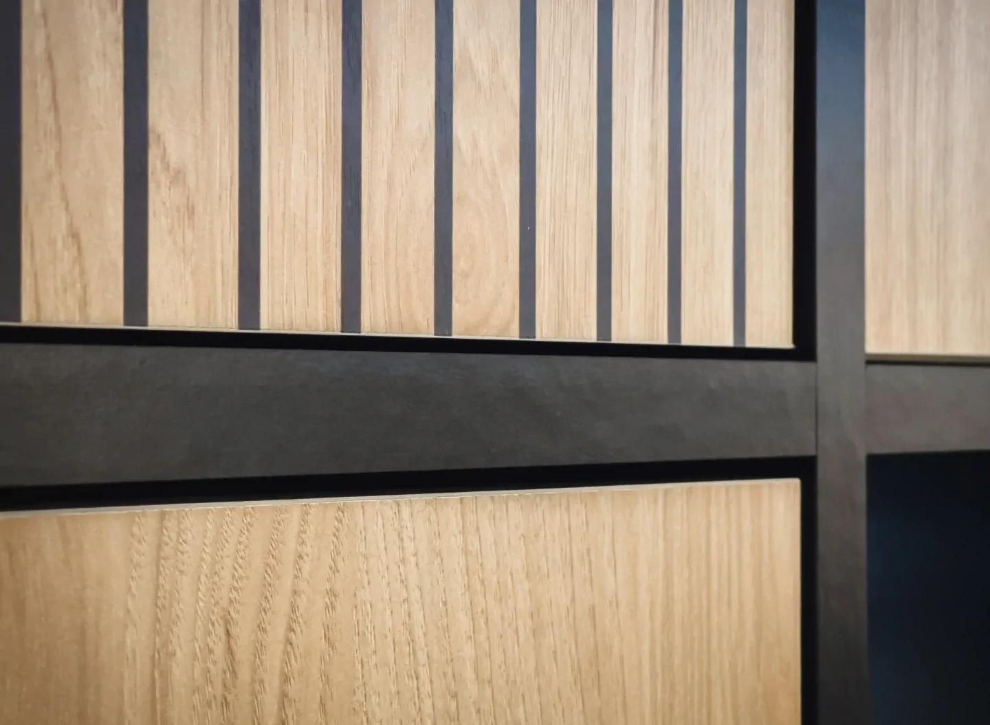 - Fronty: Płyta laminowana z nadrukiem w postaci czarnych pasków, które dodają nowoczesnego charakteru.