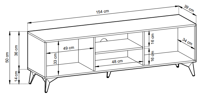 - Wysokość szafki: 49,7 cm (razem z nóżkami)