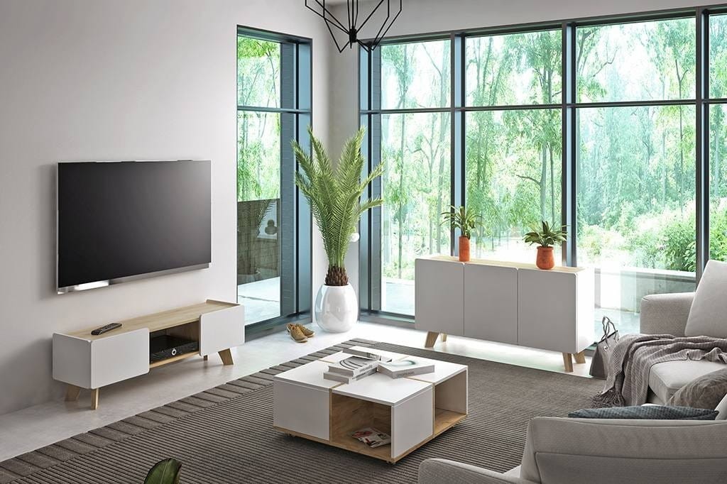 Lekkie wnętrza w lekkiej aranżacji. Szafka RTV Skandica LETT to niezwykle urokliwy i lekki w formie mebel, który jest bardzo łatwy do aranżacji. Jego biało-dębowa kolorystyka sprawia, że doskonale wpisuje się w większość nowoczesnych i skandynawskich wnętrz. Przemyślana forma pozwala na zachowanie ogromnej funkcjonalności przy jednoczesnej zgrabności gabarytów.