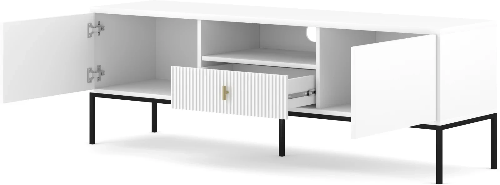 Szafka RTV Maggiore 155 cm dwudrzwiowa z szufladą biała/nogi czarne