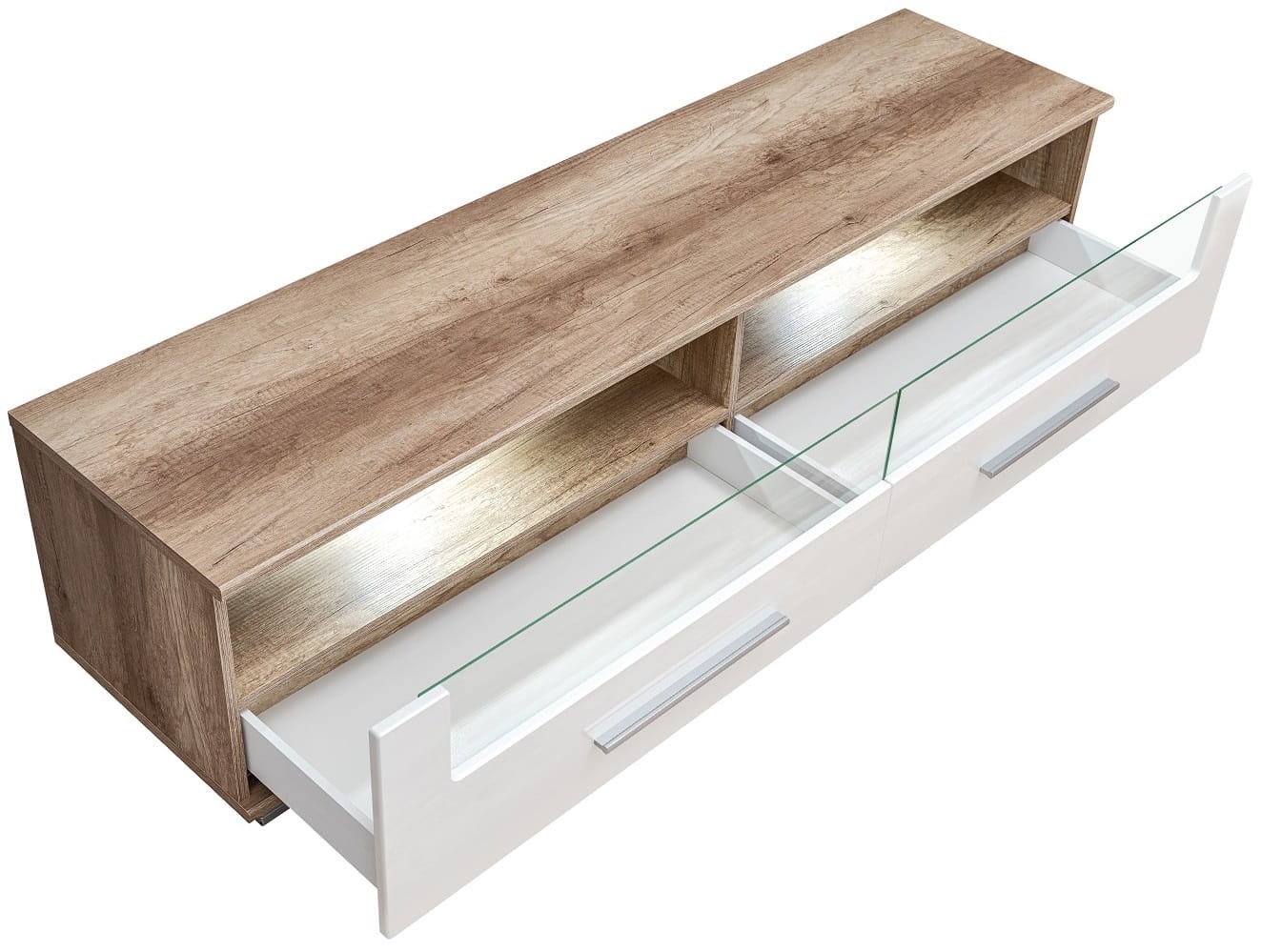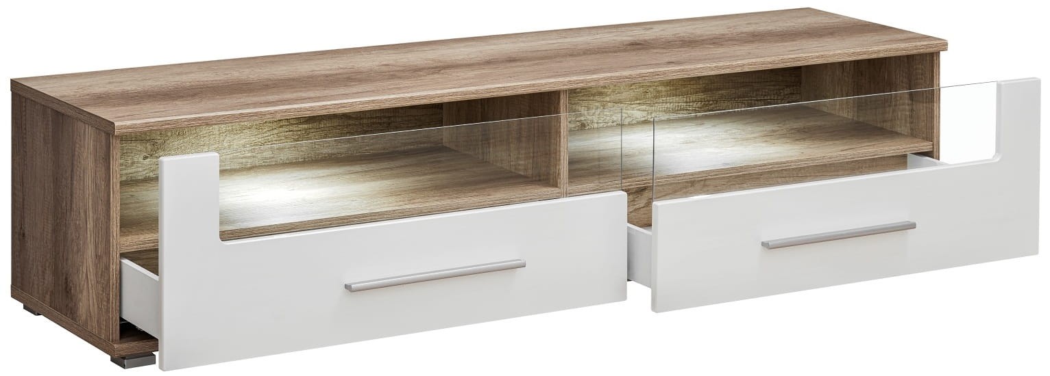 Szafka RTV SANDER dąb monument & biały MDF połysk
