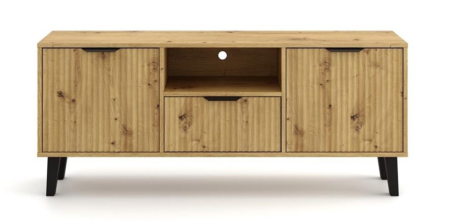 Szafka RTV Scandi Slim z ryflowanymi frontami 140 cm dąb artisan
