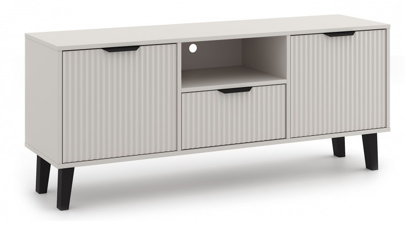Szafka RTV Scandi Slim z ryflowanymi frontami 140 cm kaszmir