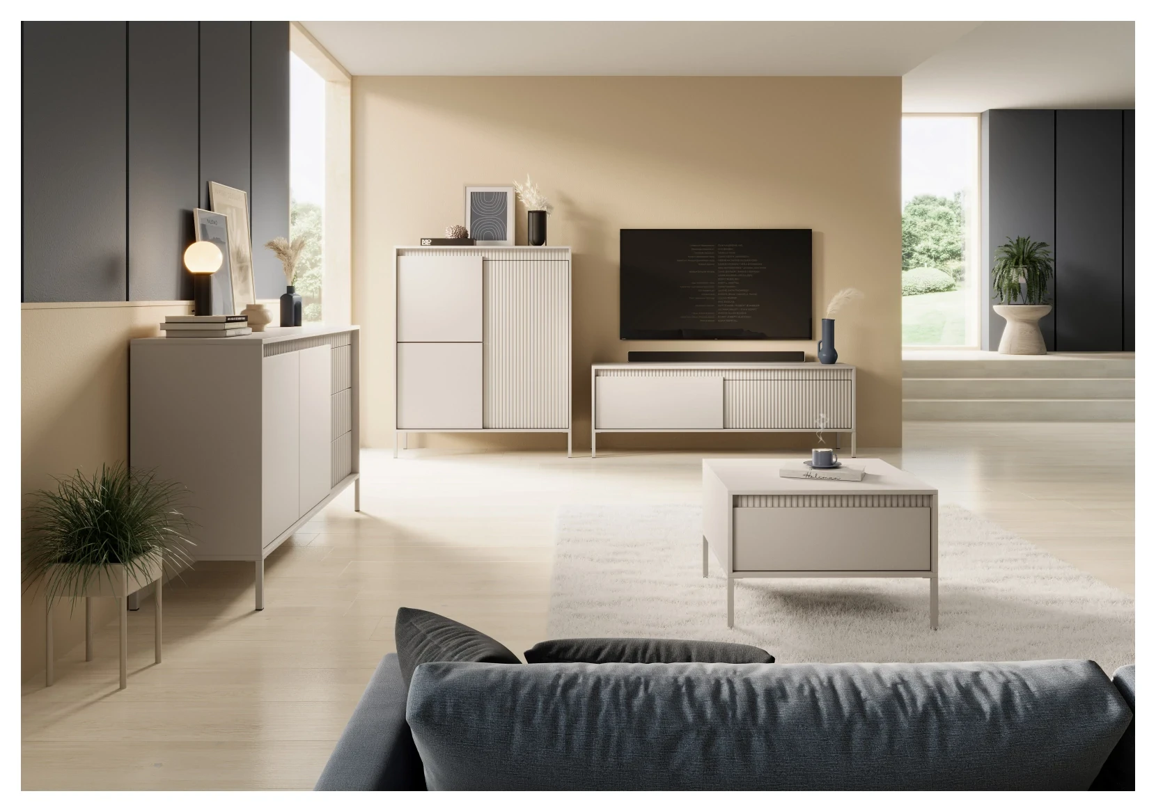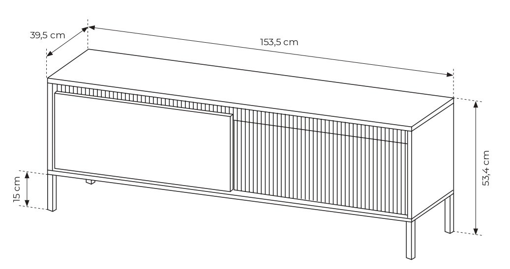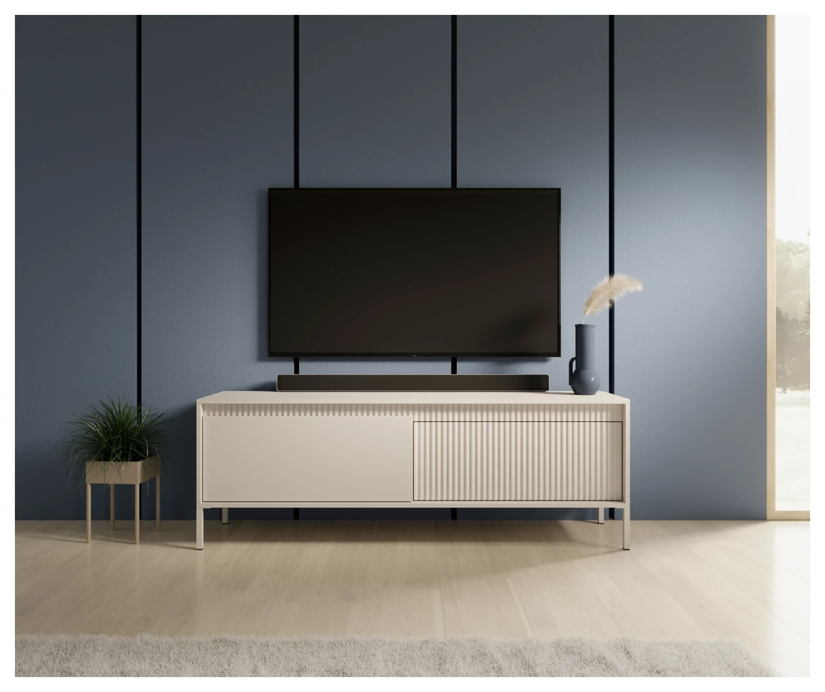 Szafka RTV Senso 2-drzwiowa z ryflowanym frontem na nóżkach 153 cm beżowa