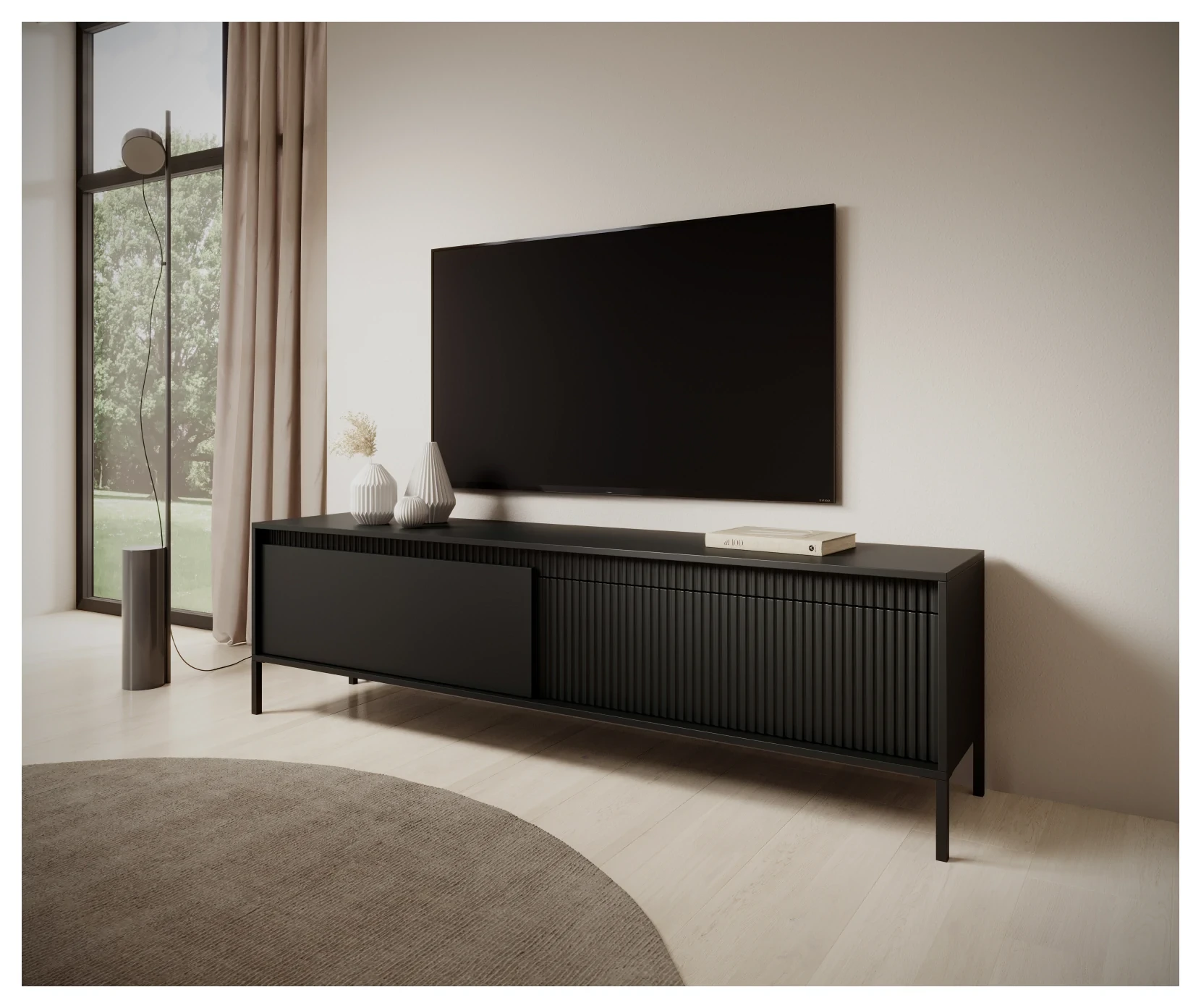 Szafka RTV Senso 2-drzwiowa z ryflowanym frontem na nóżkach 187 cm czarna