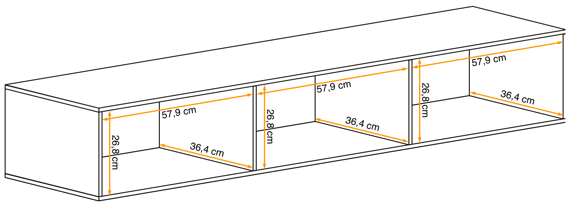 - 180 cm (szerokość) x 30 cm (wysokość) x 40 cm (głębokość)