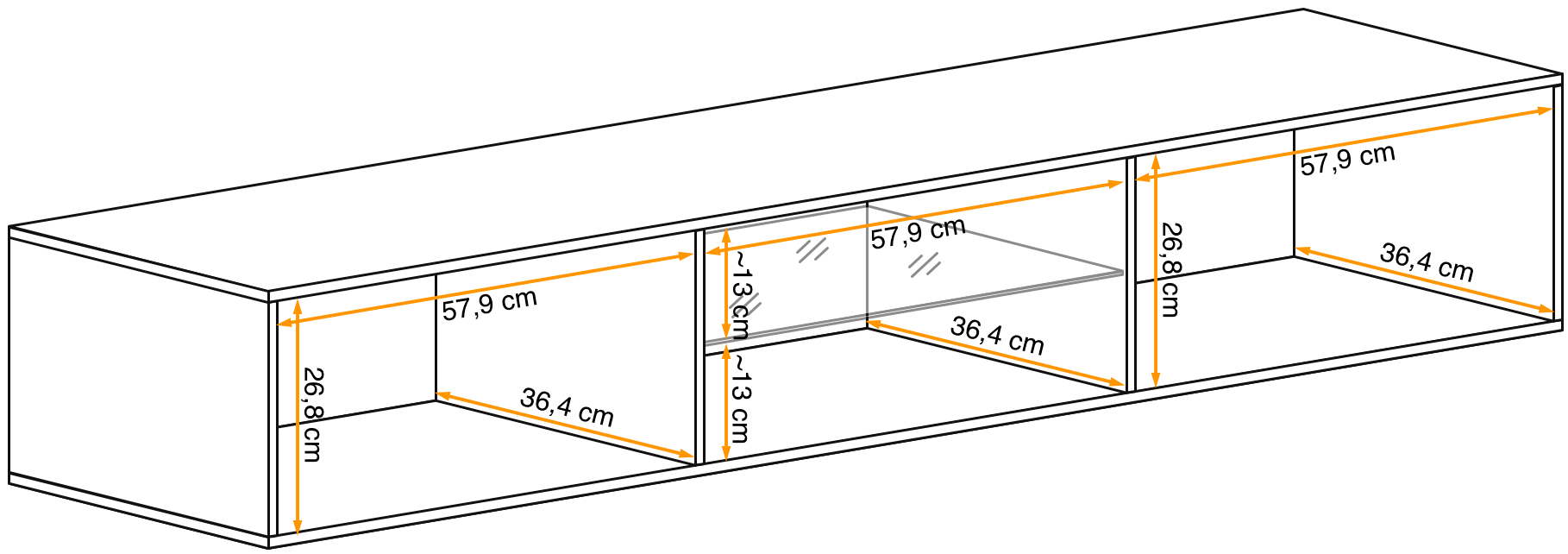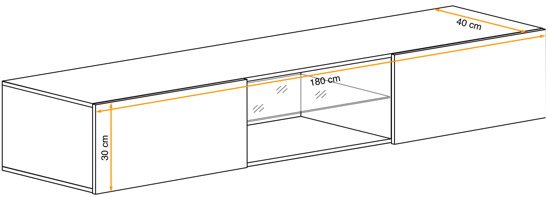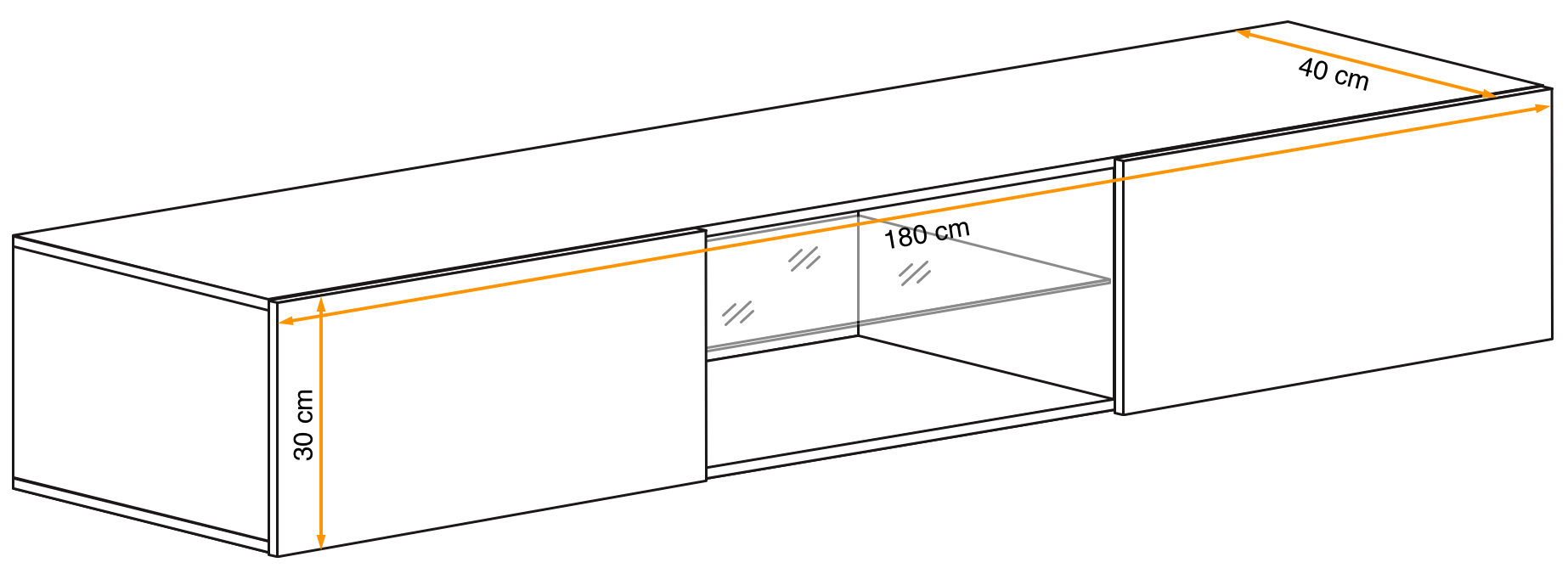 - 180 cm (szerokość) x 40 cm (wysokość) x 30 cm (głębokość)