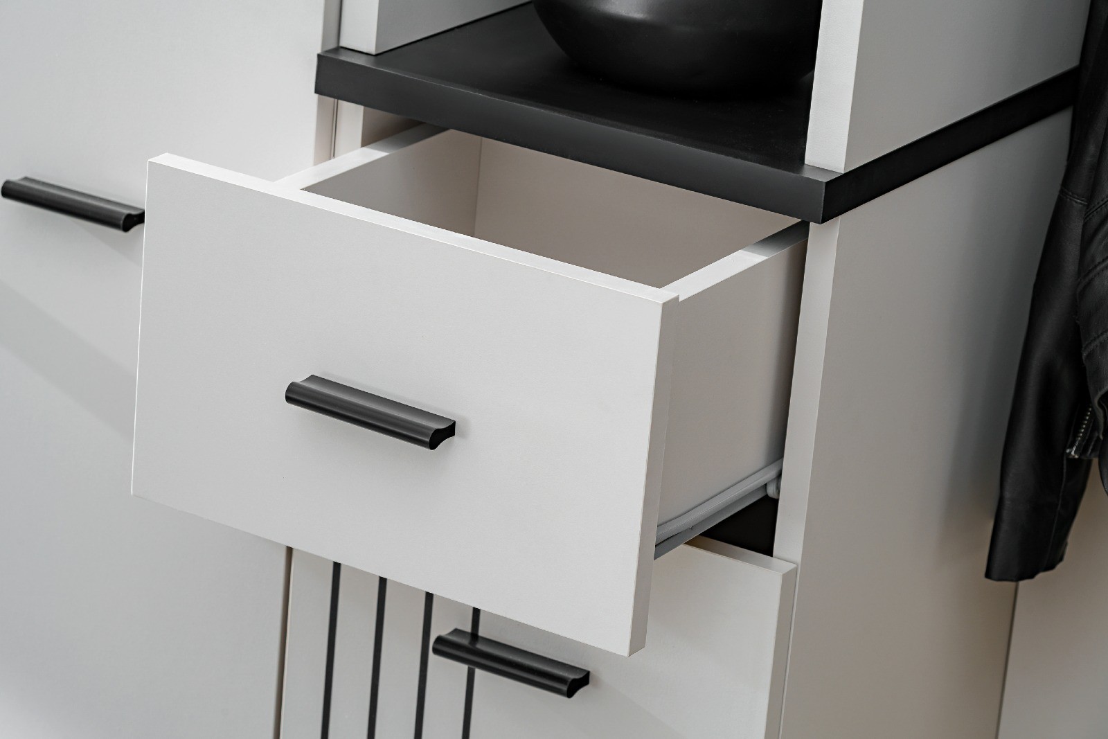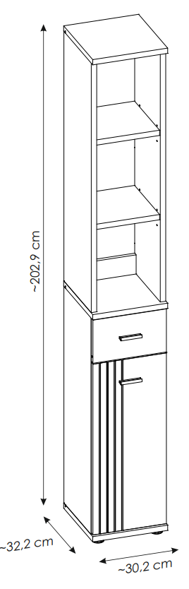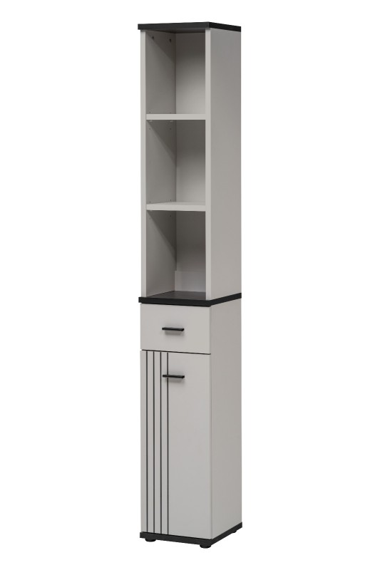 - Praktyczne półki otwarte i zamknięte - umożliwiają estetyczne przechowywanie i eksponowanie przedmiotów.