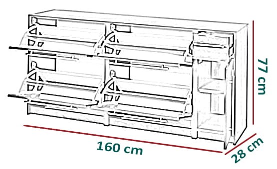 - praktyczna i funkcjonalna - pozawala na umieszczenie w niej do 24 par butów a boczna część umożliwia przechowywanie w niej butów o różnej wysokości, jak np. zimowe kozaki czy kalosze