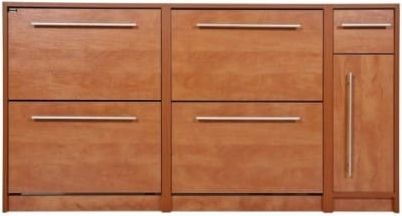 Sand to praktyczny model szafki na buty, który łączy w sobie funkcjonalność z dużą pojemnością. Sprytny projekt szafki pozwoli na przechowywanie obuwia w dużej ilości a niewielka wysokość daje możliwość korzystania z szafki także jako siedzisko. Szafka na buty Sand jest w stanie pomieścić około 18-24 par obuwia o różnej wysokości. Ta niewielka szafka posiada aż cztery dwurzędowe plastikowe schowki na buty, które są zdolne pomieścić do 6 par obuwia każdy. Z prawej strony wyposażona jest w niewielką szufladę na pełen wysuw, gdzie znajdzie się miejsce dla wszystkich drobnych przedmiotów (takich jak np. klucze lub rękawiczki). Boczna część może posłużyć jako miejsce idealne na wysokie buty typu kozaki.