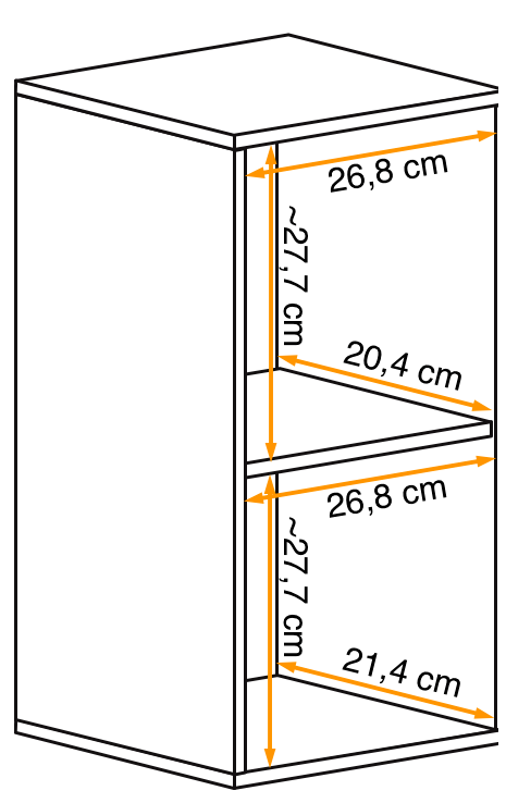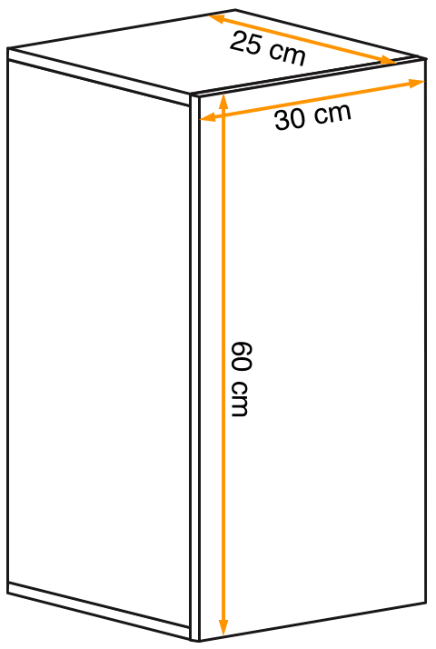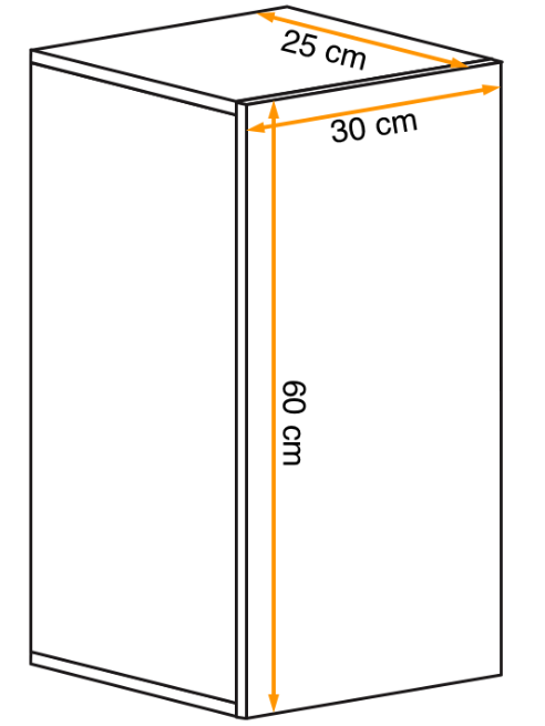 - 30 cm (szerokość) x 60 cm (wysokość) x 25 cm (głębokość)