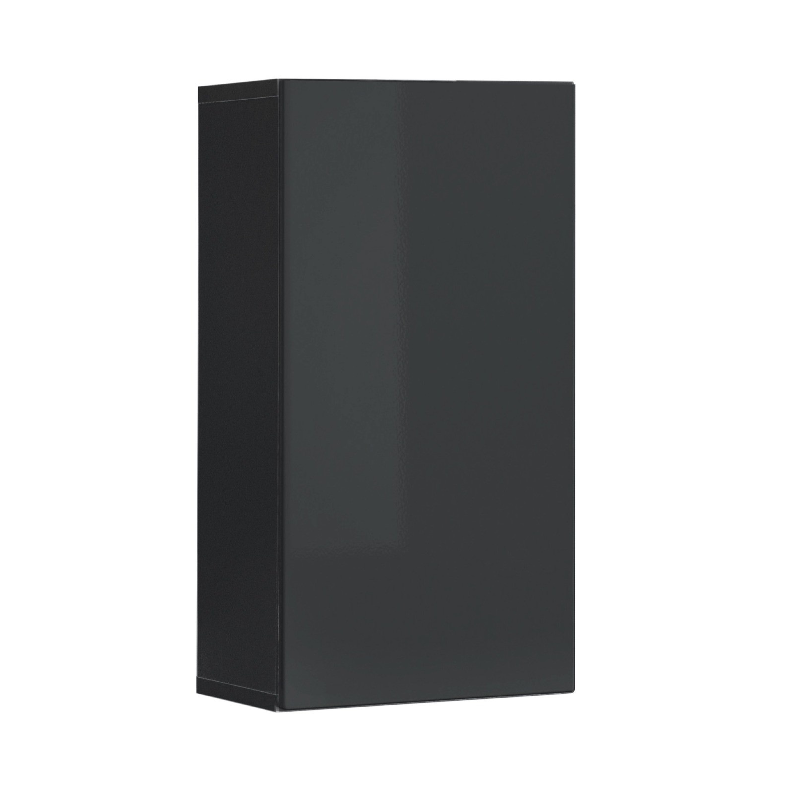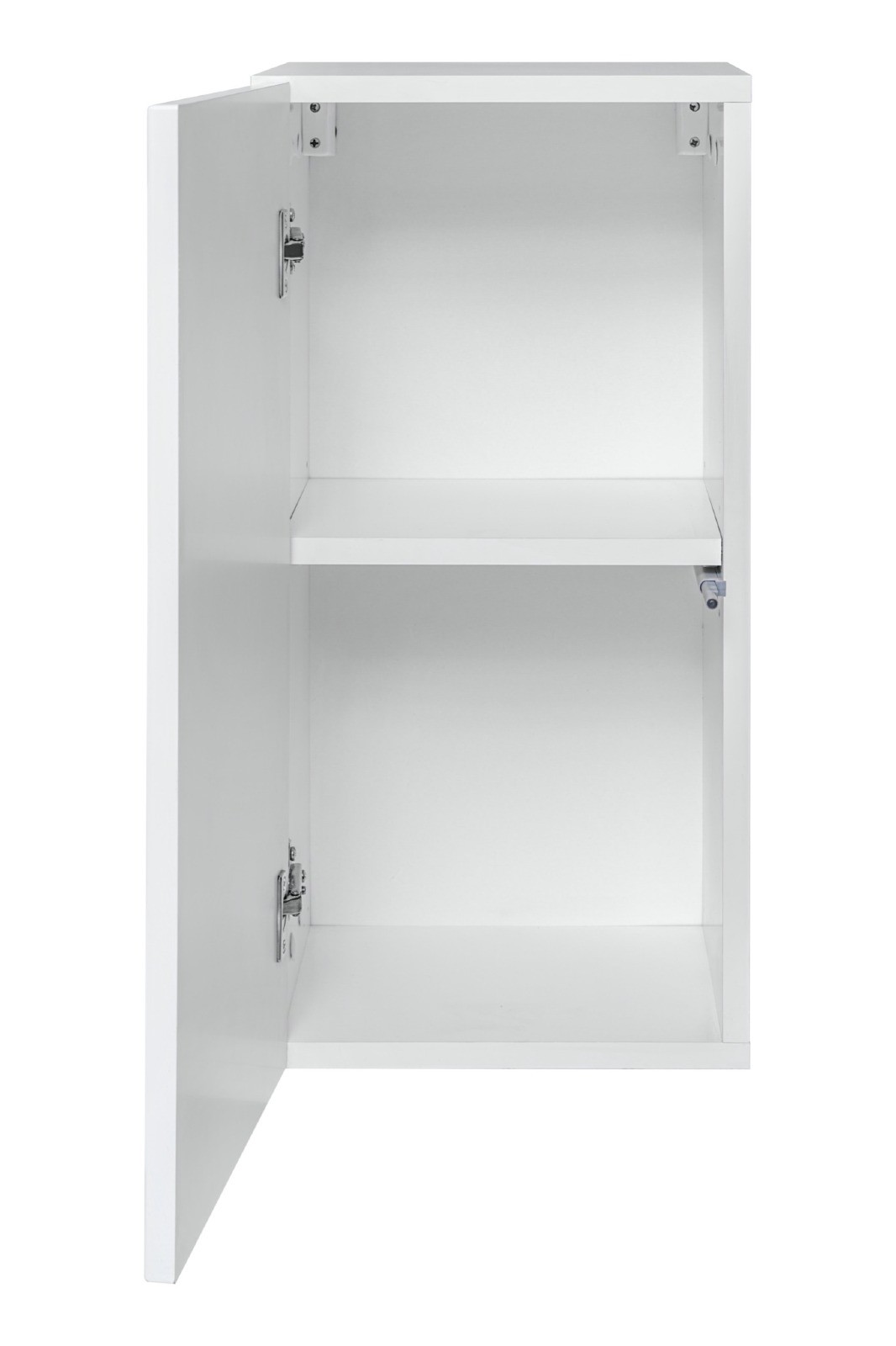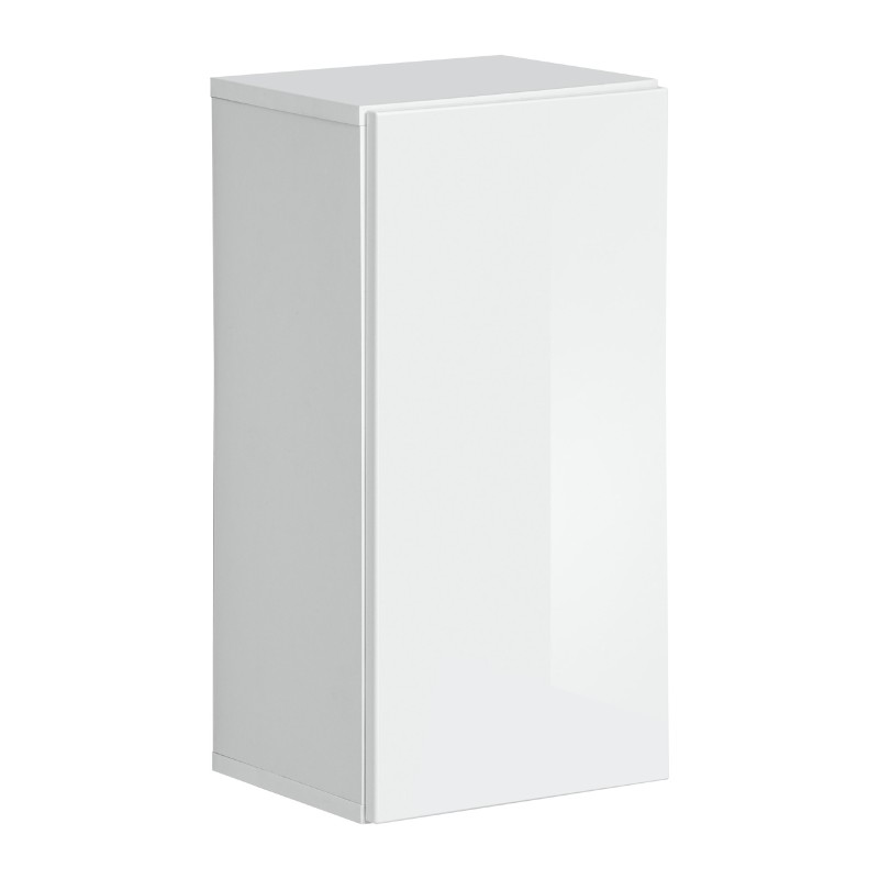 - Opis: Szafka wisząca z 1 drzwiami; za drzwiami półka tworząca 2 komory; system otwierania push-click