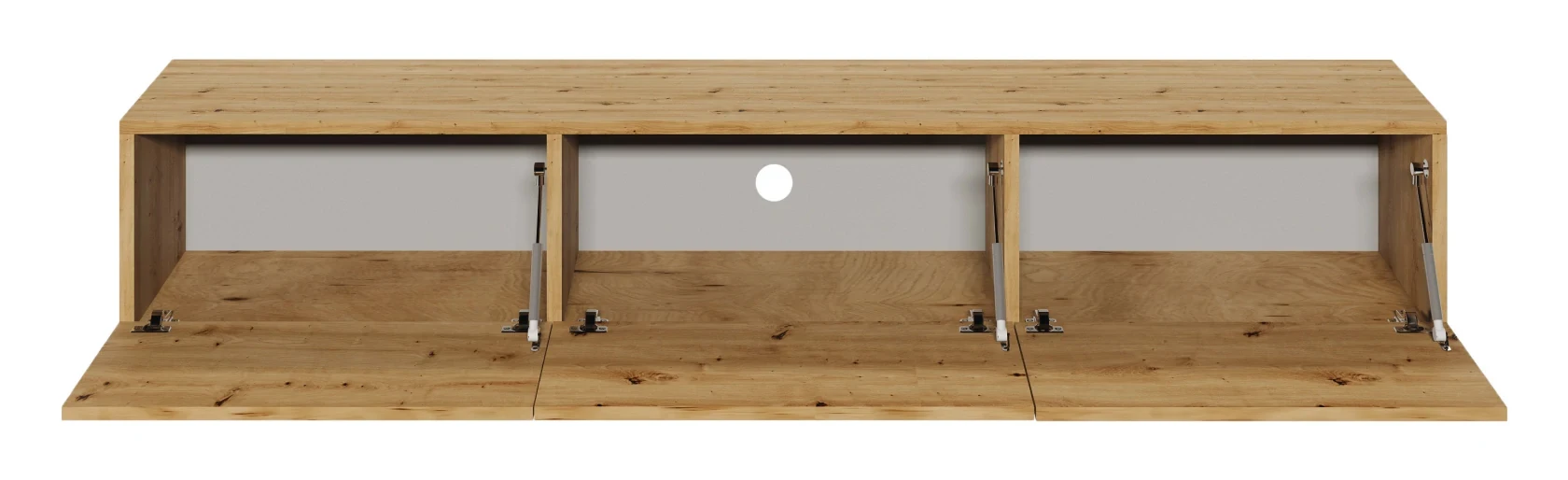 - Trzydrzwiowa konstrukcja – umożliwia przechowywanie różnorodnych akcesoriów i sprzętu RTV, a opuszczane klapy zapewniają łatwy i wygodny dostęp.