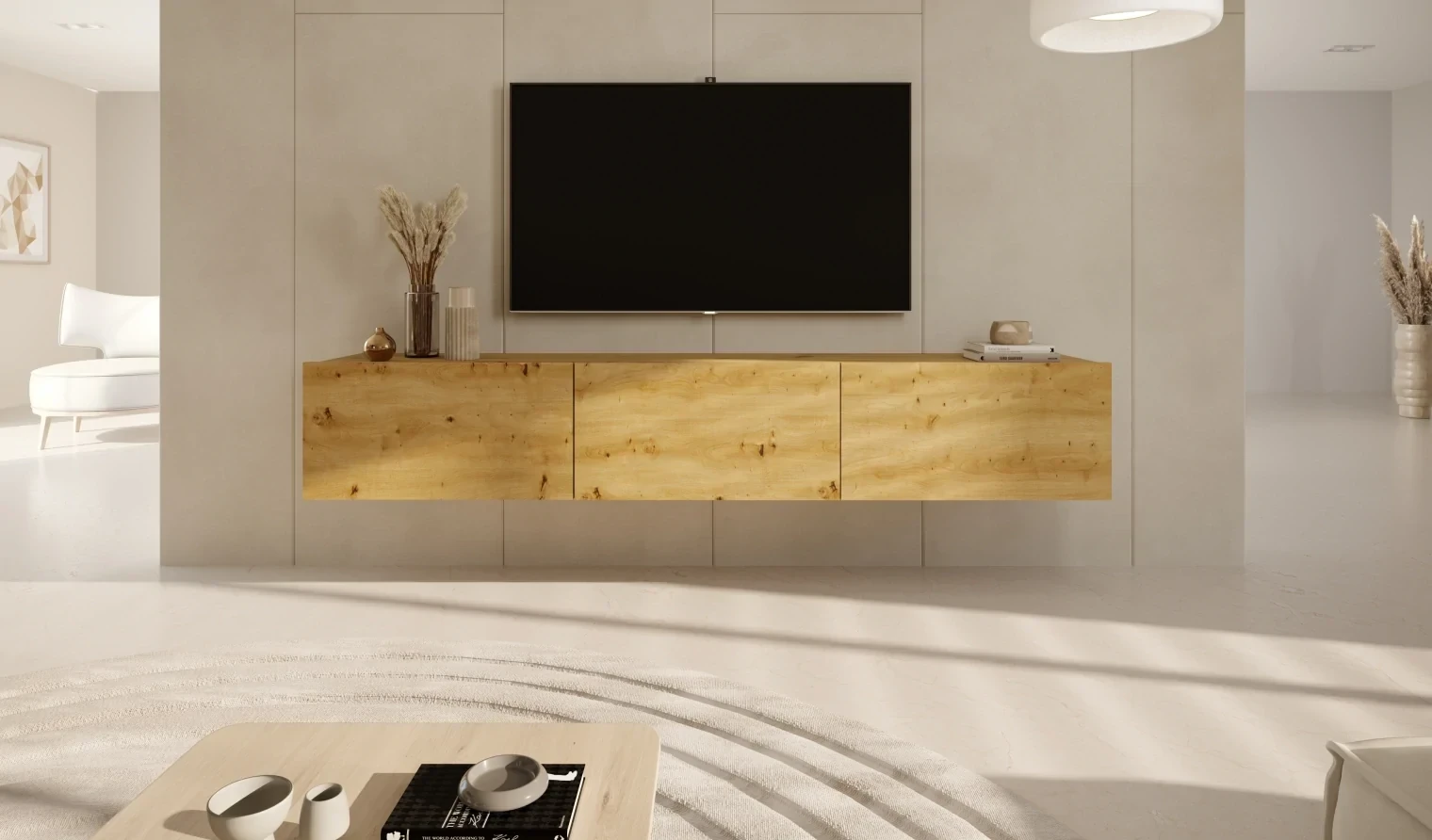 Szafka wisząca RTV Dallas 180 cm trzydrzwiowa do salonu Dąb Artisan