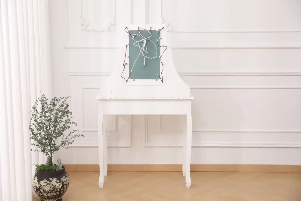 Nowoczesna toaletka DT02 z oświetleniem LED to praktyczny i elegancki mebel do sypialni lub garderoby. Zapewnia komfortowe warunki do wykonywania makijażu oraz codziennej pielęgnacji, łącząc funkcjonalność z minimalistycznym designem.