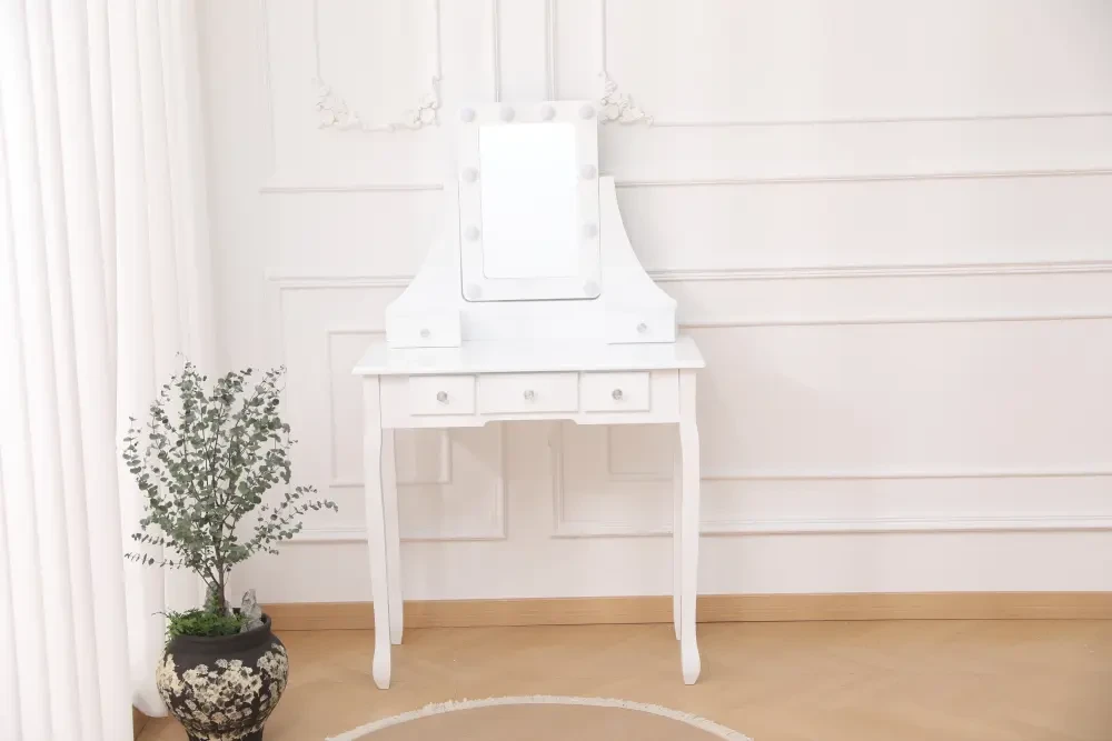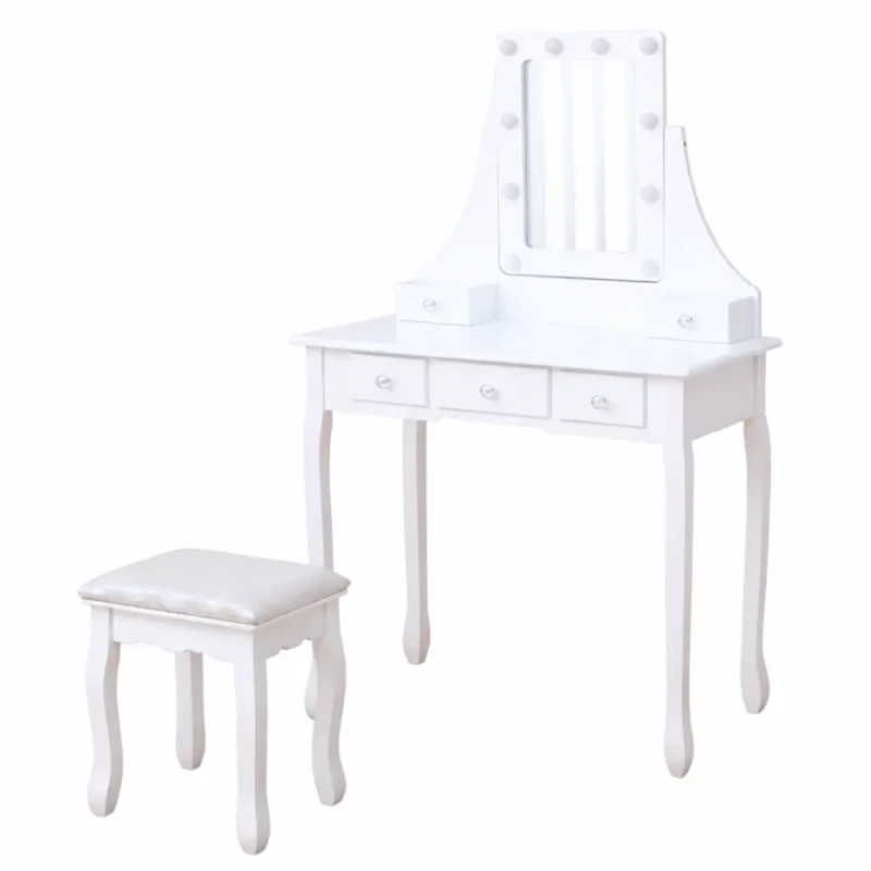 Toaletka kosmetyczna DT02 LED z lustrem, 5 szufladami i taboretem biała