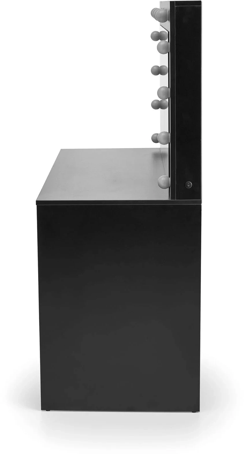 - Solidność i trwałość: Wykonana z płyty meblowej okleinowanej, toaletka Hollywood XL jest trwała i odporna na codzienne użytkowanie. Czarny kolor dodaje jej elegancji, a także sprawia, że jest łatwa w utrzymaniu czystości, co jest szczególnie ważne w przypadku mebli tego typu.