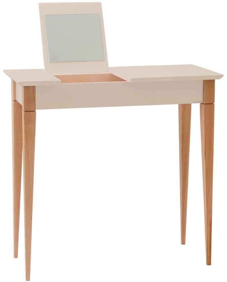 Toaletka MIMO zachwyca swoją niezwykle lekką i naturalną formą. Jest to mebel modernistyczny, inspirowany stylem skandynawskim. Posiada bardzo funkcjonalny i pożyteczny schowek z lusterkiem, ukryty pod blatem toaletki, gdzie znajdziesz miejsce idealne do przechowywania kosmetyków, produktów pielęgnacyjnych oraz biżuterii. MIMO to zarówno funkcjonalny mebel jak i niezwykle ozdobny dodatek do sypialni lub garderoby. Dostępny w 3 wariantach szerokości (65 cm, 85 cm, 105 cm) oraz w wielu kolorach, co pozwala na stworzenie niepowtarzalnego oraz unikatowego mebla. Oprócz wersji z nogami o przekroju kwadratowym toaletka jest także dostępne w wariancie z nogami kabriolowymi oraz toczonymi. Toaletka doskonale sprawdzi się również jako ozdobny mebel do przedpokoju oraz holu, gdzie nikt nie przejdzie obok niej obojętnie.