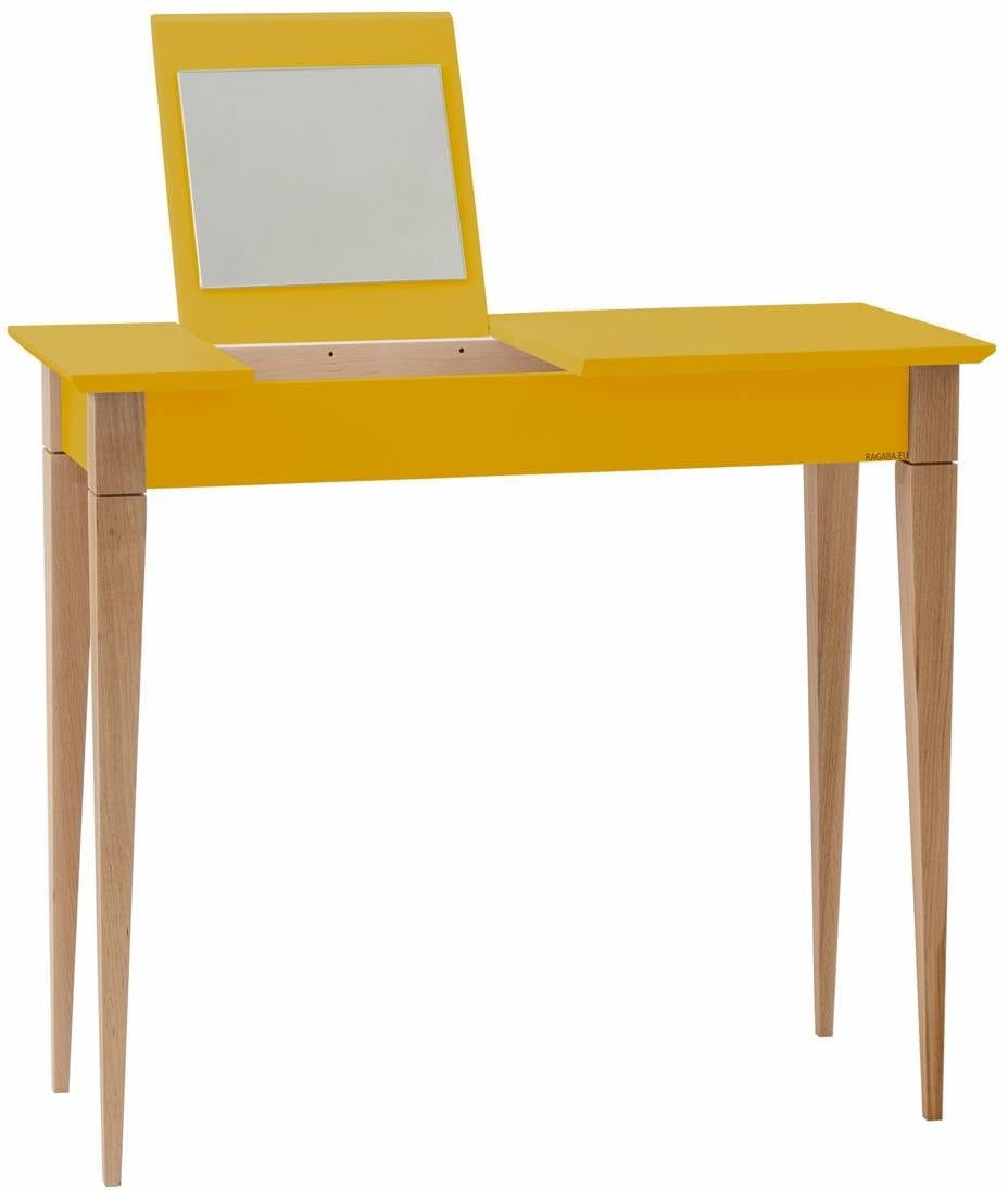 Toaletka MIMO zachwyca swoją niezwykle lekką i naturalną formą. Jest to mebel modernistyczny, inspirowany stylem skandynawskim. Posiada bardzo funkcjonalny i pożyteczny schowek z lusterkiem, ukryty pod blatem toaletki, gdzie znajdziesz miejsce idealne do przechowywania kosmetyków, produktów pielęgnacyjnych oraz biżuterii. MIMO to zarówno funkcjonalny mebel jak i niezwykle ozdobny dodatek do sypialni lub garderoby. Dostępny w 3 wariantach szerokości (65 cm, 85 cm, 105 cm) oraz w wielu kolorach, co pozwala na stworzenie niepowtarzalnego oraz unikatowego mebla. Oprócz wersji z nogami o przekroju kwadratowym toaletka jest także dostępne w wariancie z nogami kabriolowymi oraz toczonymi. Toaletka doskonale sprawdzi się również jako ozdobny mebel do przedpokoju oraz holu, gdzie nikt nie przejdzie obok niej obojętnie.