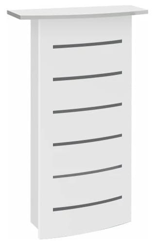 Home to praktyczna i trwała toaletka, która znajdzie swoje zastosowanie w każdym przedpokoju. Prezentowany model szafki został stworzony po to, żeby dzięki jej kompaktowym wymiarom zaoszczędzić miejsce w przedpokoju oraz pozwolić na funkcjonalne zagospodarowanie przestrzeni. Szafka wyposażona została w jedne lekko wypukłe drzwiczki z wyciętym wzorem oraz 3 półki wewnątrz, które posłużą do uporządkowania przedpokoju. Dzięki niewielkiej wielkości zmieści się w mniejszych przedpokojach zachowując pełnię funkcjonalności. Blat toaletki wykonany został z płyty laminowanej a pozostała część z metalu i polakierowana na jeden z 3 dostępnych kolorów. Kolekcja Home zawiera lekkie i minimalistyczne bryły, które odnajdą się w każdym przedpokoju, są to szafka na buty, komoda, wieszak, lustro oraz szafa obrotowa.