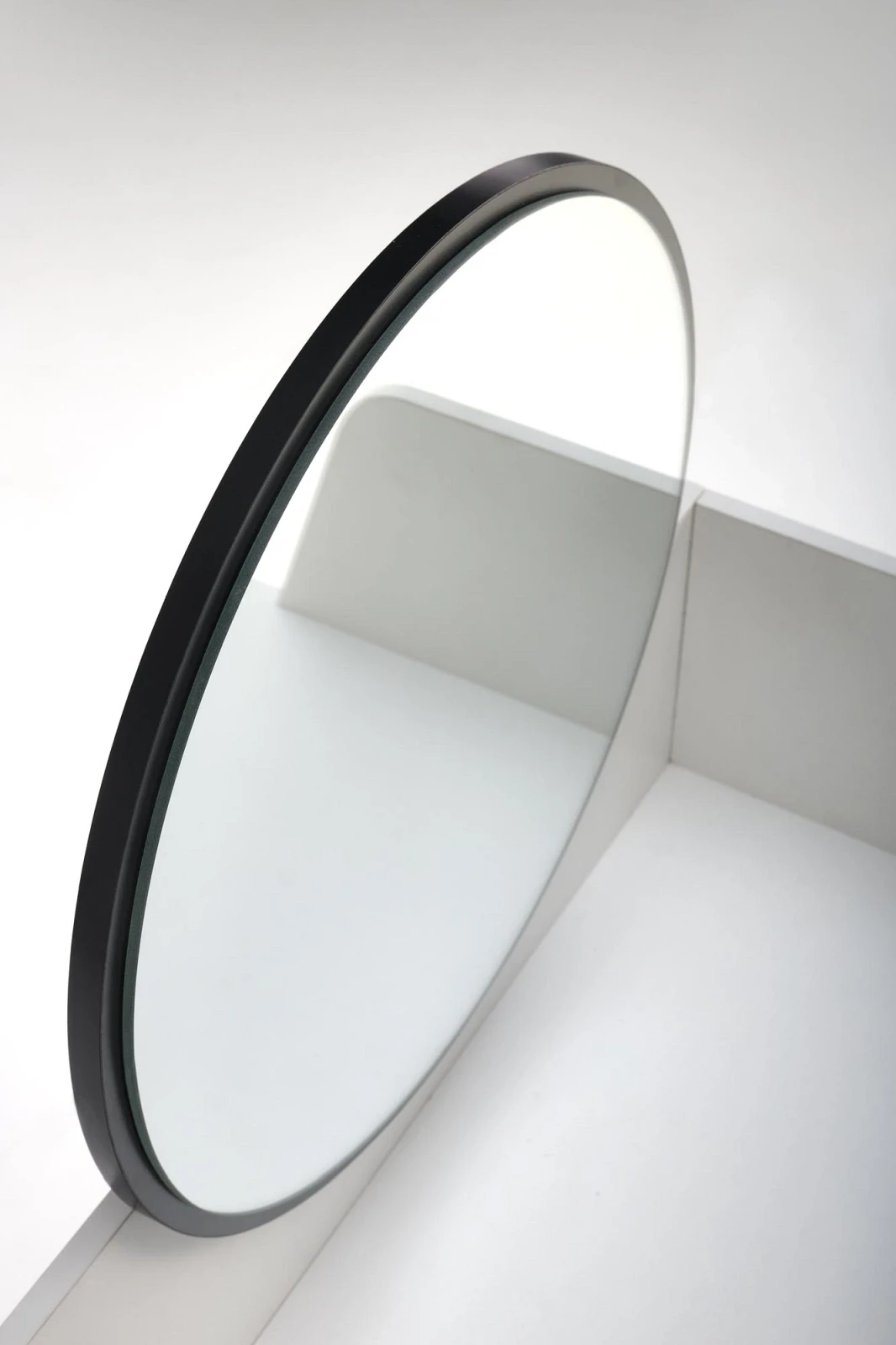 - Duże, okrągłe lustro w metalowej ramie ułatwiające codzienną pielęgnację i makijaż