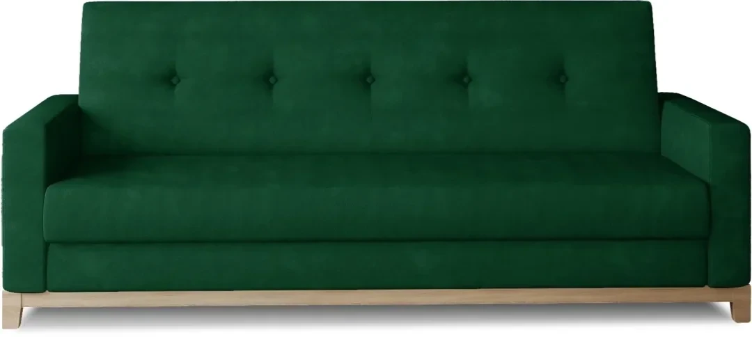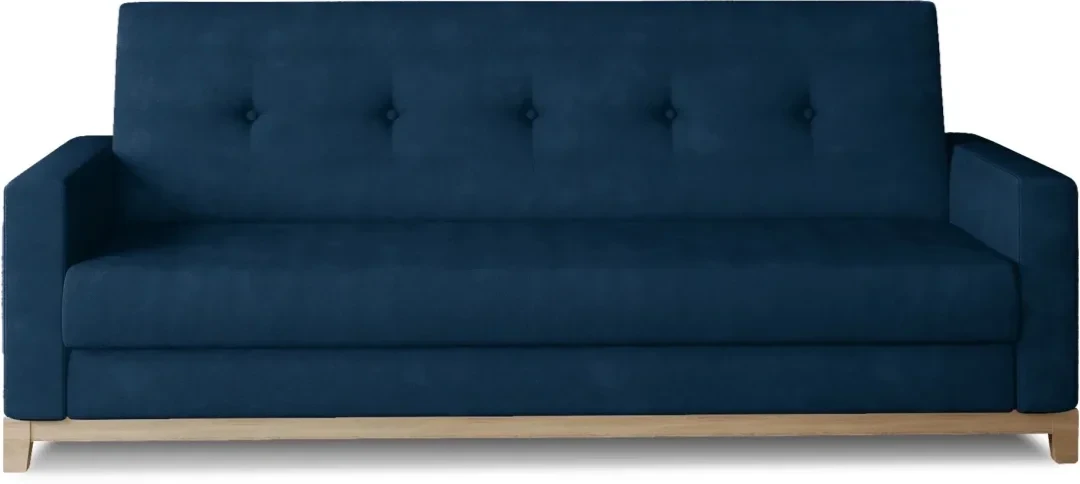 Wersalka Selene to połączenie ponadczasowej elegancji i praktycznej funkcjonalności. Prosta bryła urozmaicona pikowaniem oraz ozdobnymi guzikami w kolorze tkaniny wprowadza do wnętrza harmonię i subtelny szyk. Drewniane nóżki oraz listwa dekoracyjna dodają całości lekkości i podkreślają wysoką jakość wykonania. Dzięki intuicyjnemu mechanizmowi rozkładania typu click-clack, wersalka szybko zamienia się w wygodne łóżko z pojemnym schowkiem na pościel, co czyni ją idealnym wyborem zarówno do salonu, jak i mniejszych mieszkań.
