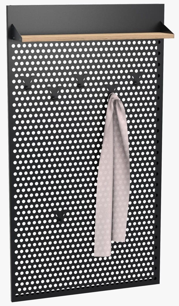 Wieszak metalowy szeroki z półką Loft 2W czarny/dąb wotan