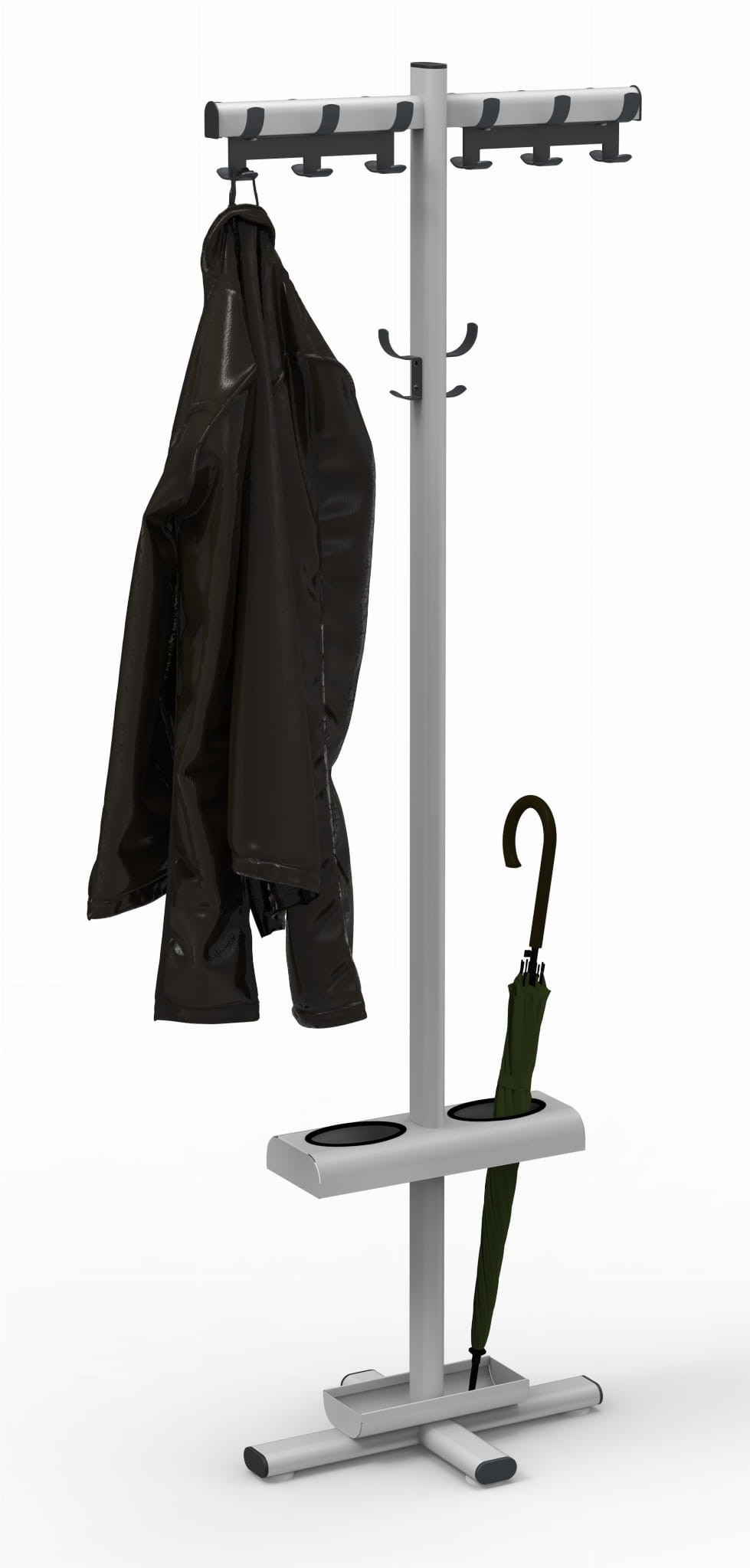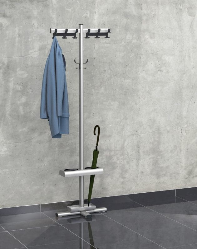 Wieszak dostępny jest w opcji z dodatkowym wyposażeniem, jak parasolnik z miejscem na 2 parasole.