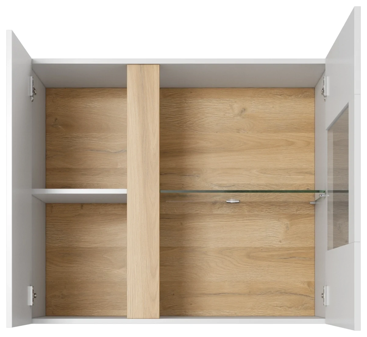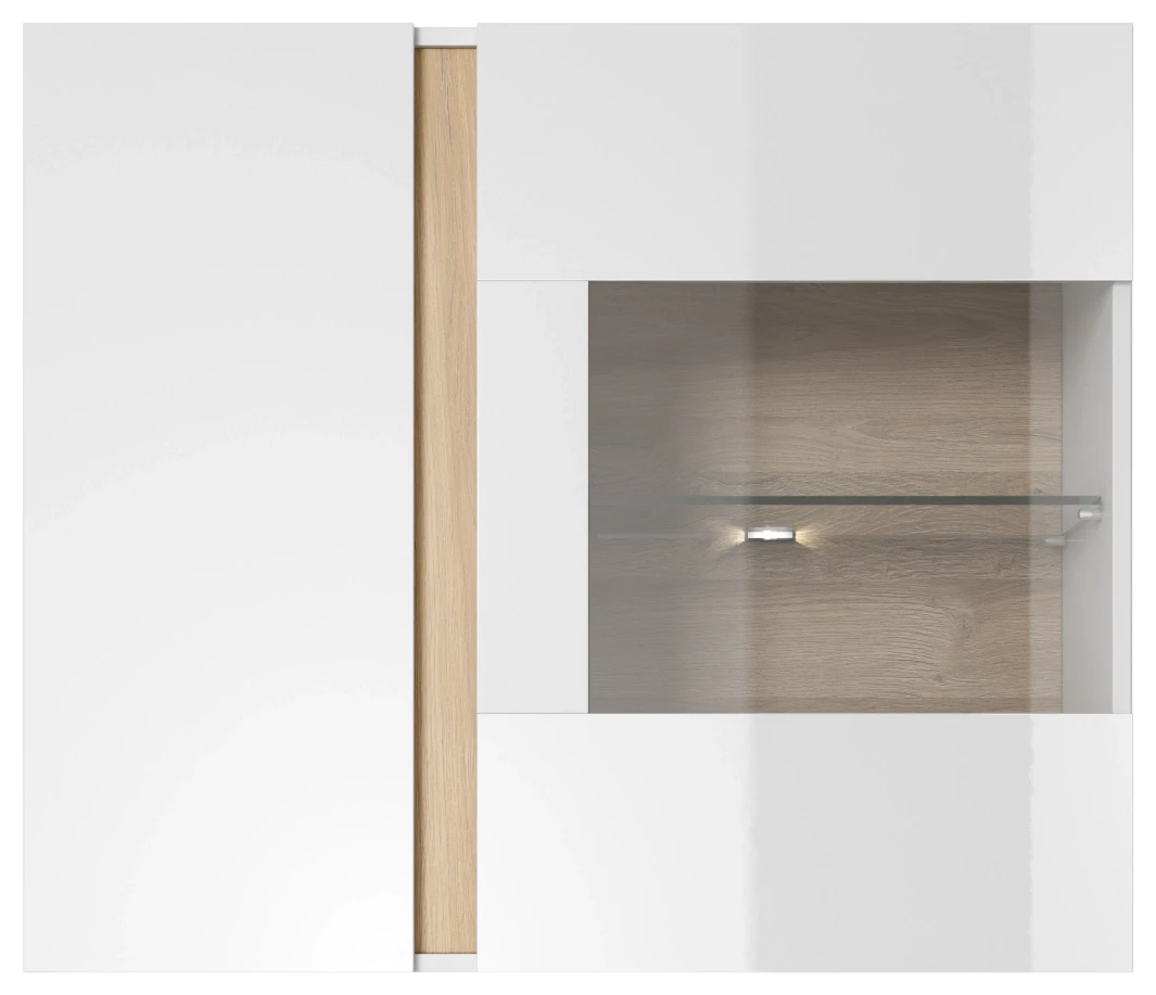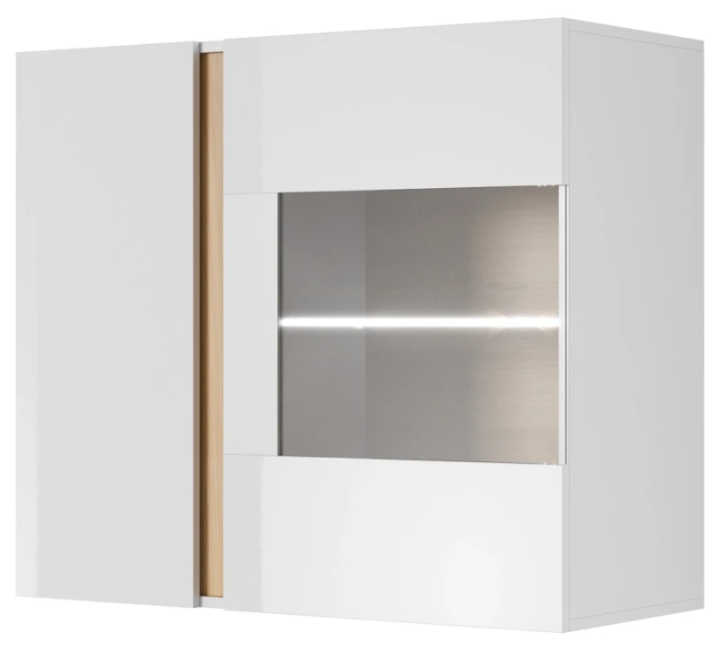 Witryna Arco wisząca 96 cm biały połysk + dąb grandson