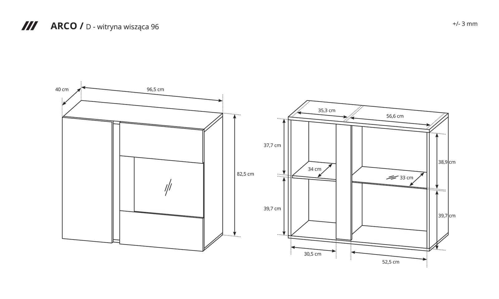 Wymiary witryny wiszącej Arco: