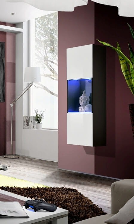 Witryna Fly 21 to stylowy mebel, który elegancko wkomponuje się w nowoczesne wnętrza. Oszklony front zdobiony listwami nadaje jej wyrafinowany wygląd, a wewnątrz dwie szklane półki oświetlane potrójnym niebieskim LED efektownie eksponują zawartość, dodając pomieszczeniu subtelnego, nowoczesnego blasku. Fronty wykonane w technologii tiefzieh z PCV w połysku nie tylko podkreślają elegancki design, ale są również łatwe w utrzymaniu czystości. Intuicyjny system push click zapewnia wygodne otwieranie bez konieczności uchwytów, co dodatkowo ułatwia zachowanie minimalistycznego stylu. Witryna Fly 21 idealnie łączy w sobie funkcjonalność z nowoczesną estetyką, będąc doskonałym wyborem dla osób ceniących połączenie designu z praktycznym zastosowaniem.
