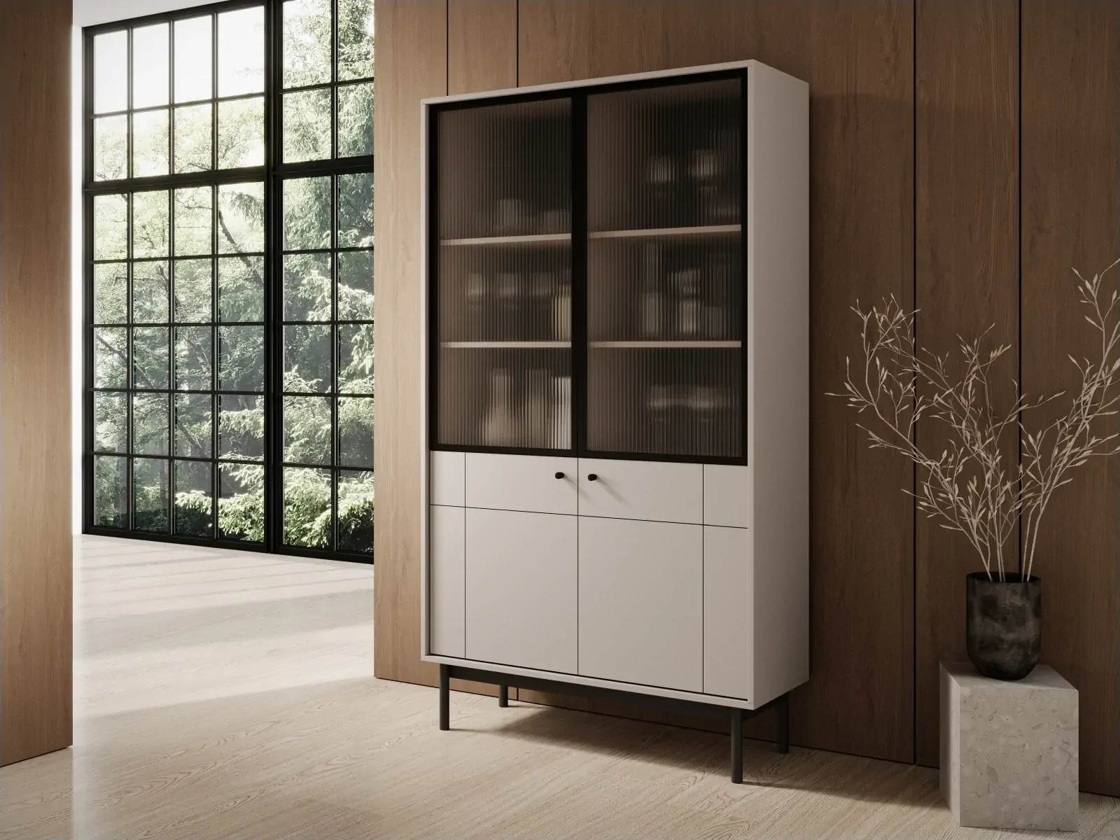 Witryna Japandi 104 cm z ryflowaną szybą do salonu Kaszmir