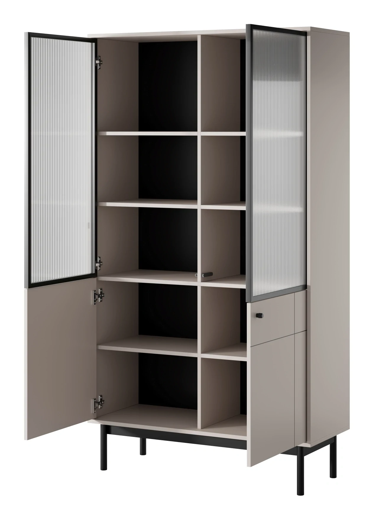 - Nowoczesny design - ryflowana szyba w połączeniu z eleganckim kolorem kaszmirowym tworzy stylowy akcent, który podkreśla nowoczesny charakter wnętrza.