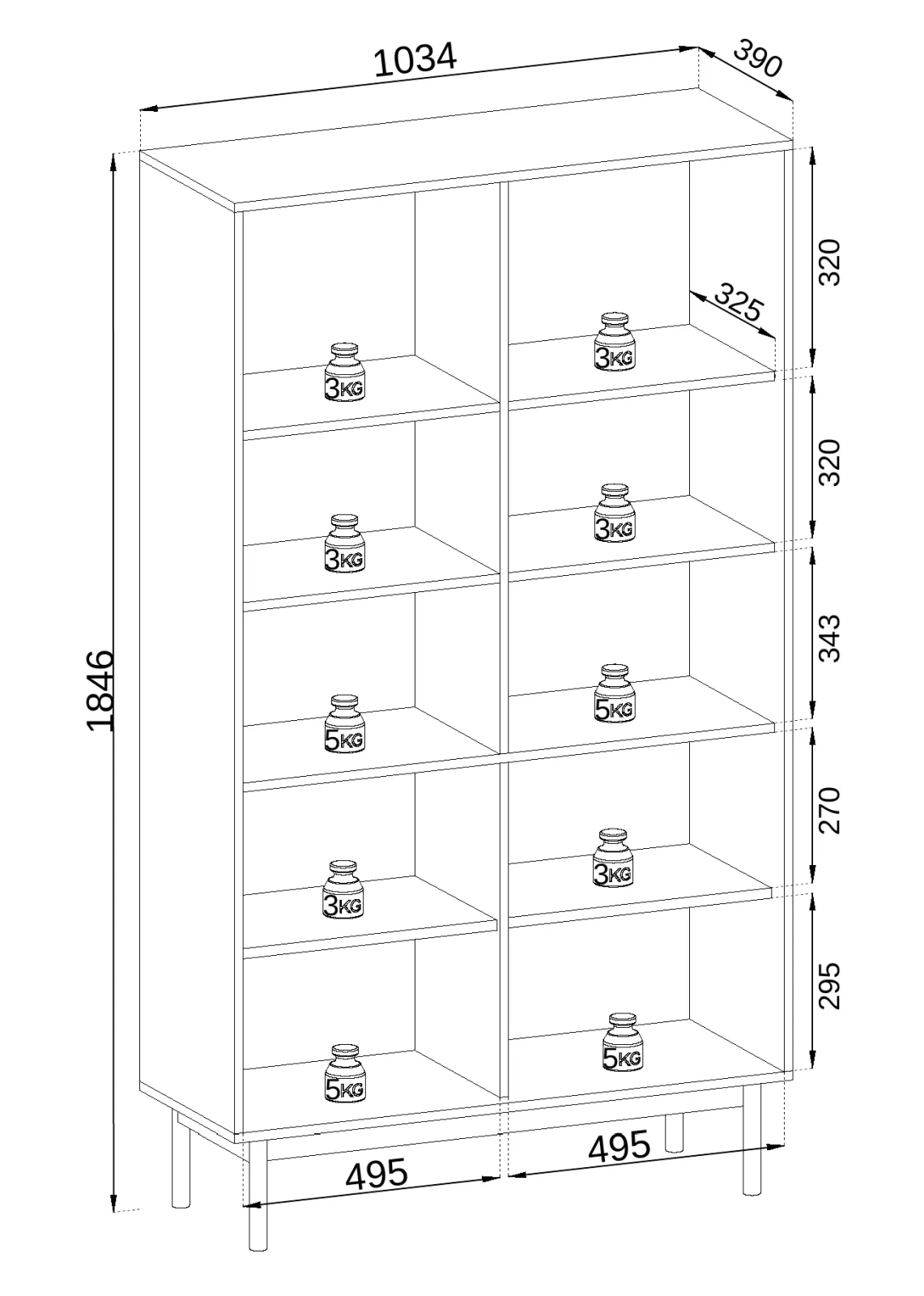 - Funkcjonalność - przestronne półki pozwalają na przechowywanie różnorodnych przedmiotów, zachowując porządek i organizację w pomieszczeniu.