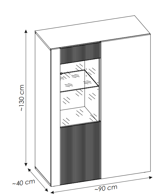 - szerokość 90 cm x wysokość 132 cm x głębokość 40 cm