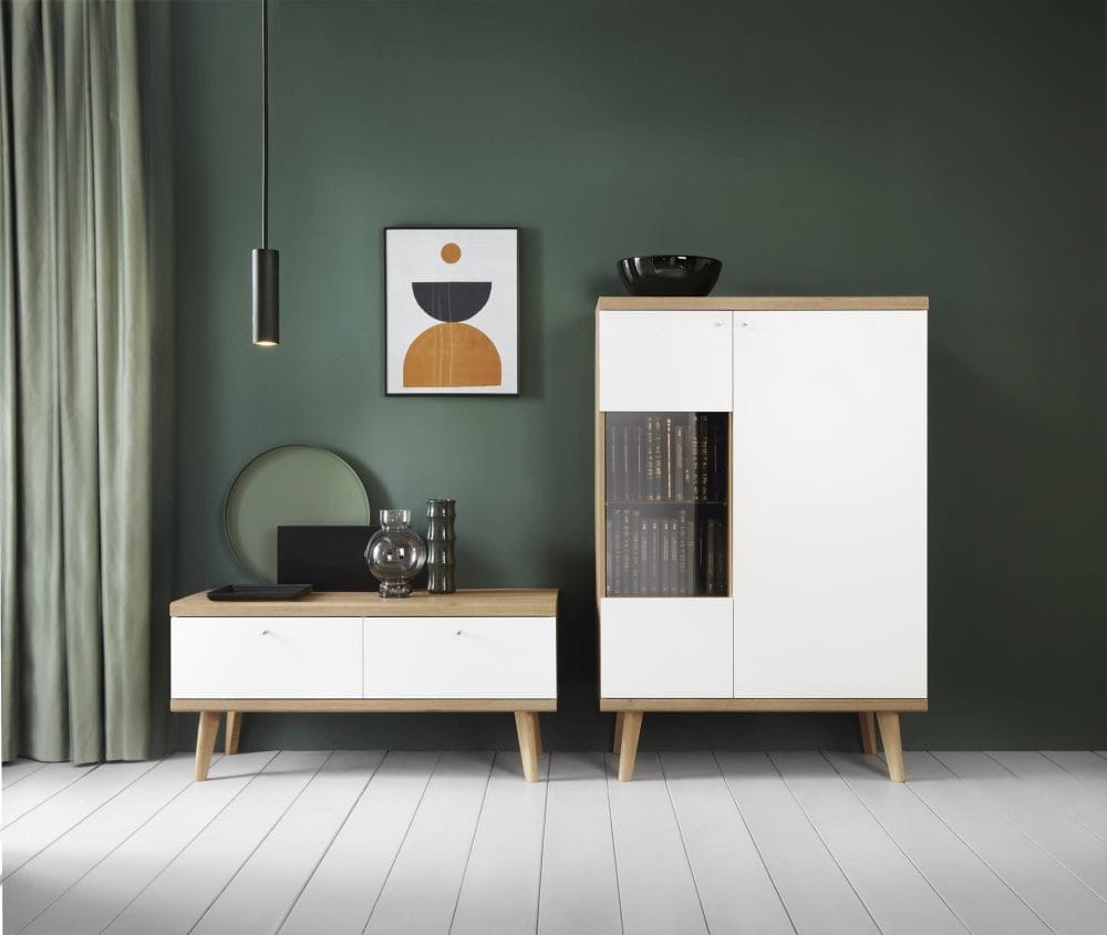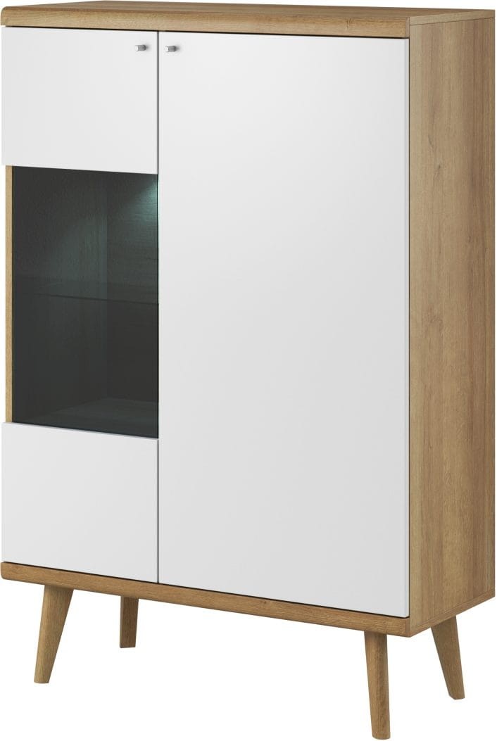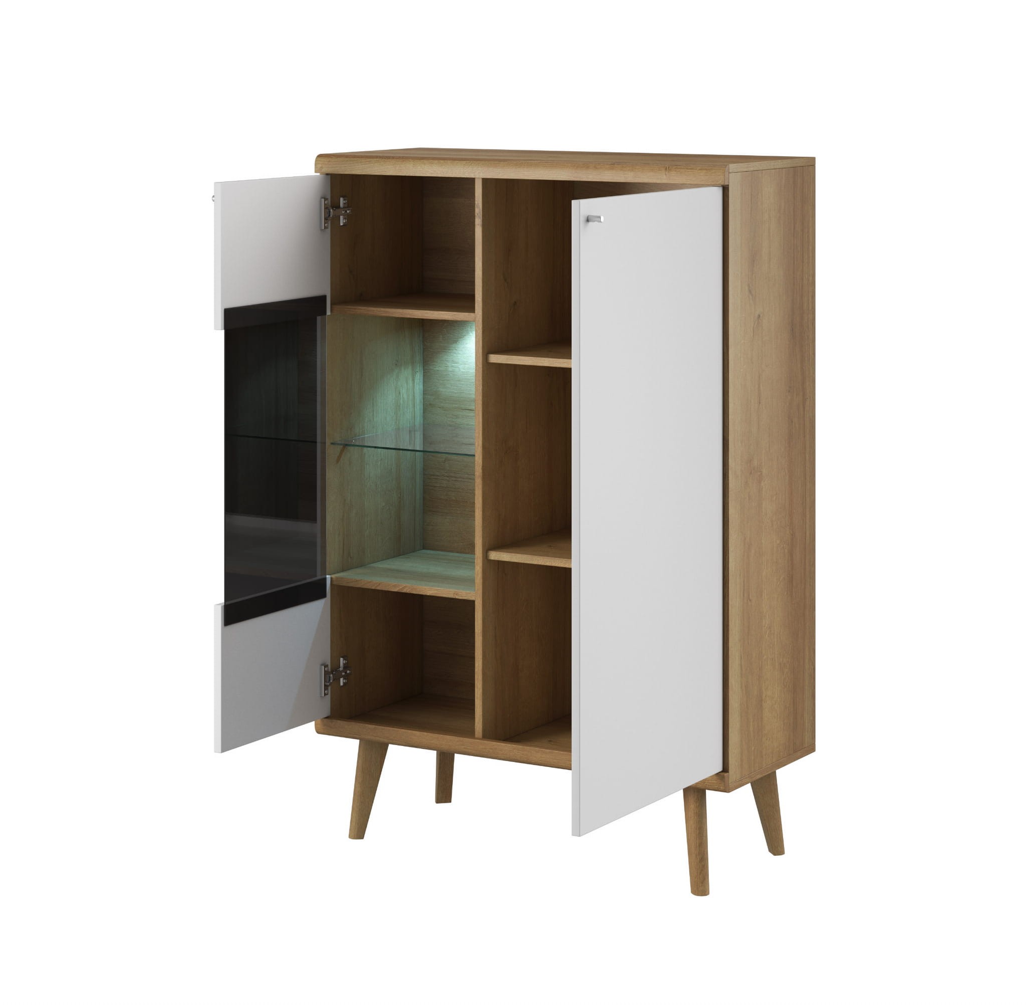 Witryna Primo to praktyczny i pojemny mebel utrzymany w nowoczesnym stylu. Witryna została wyposażona w pojemne półki, które pomieszczą sporo ubrań lub innych podręcznych rzeczy z kolei przeszklona półka to doskonałe miejsce na wyeksponowanie pamiątek, zdjęć czy dekoracji. Opcjonalnie istnieje możliwość dokupienia oświetlenia, które jeszcze bardziej podkreśli charakter mebla. Nowoczesny, minimalistyczny design połączony z delikatnym kolorem bieli sprawia, że witryna Primo prezentuje się niezwykle stylowo i nowocześnie. Mebel został zaprojektowany i wykonany w Polsce co jest gwarancją jakości - Wspieraj