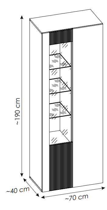 - szerokość 70 cm x wysokość 192 cm x głębokość 40 cm