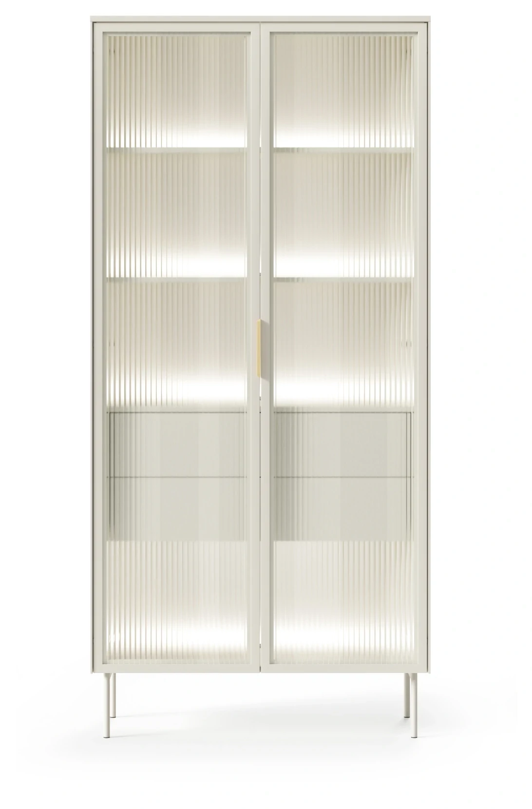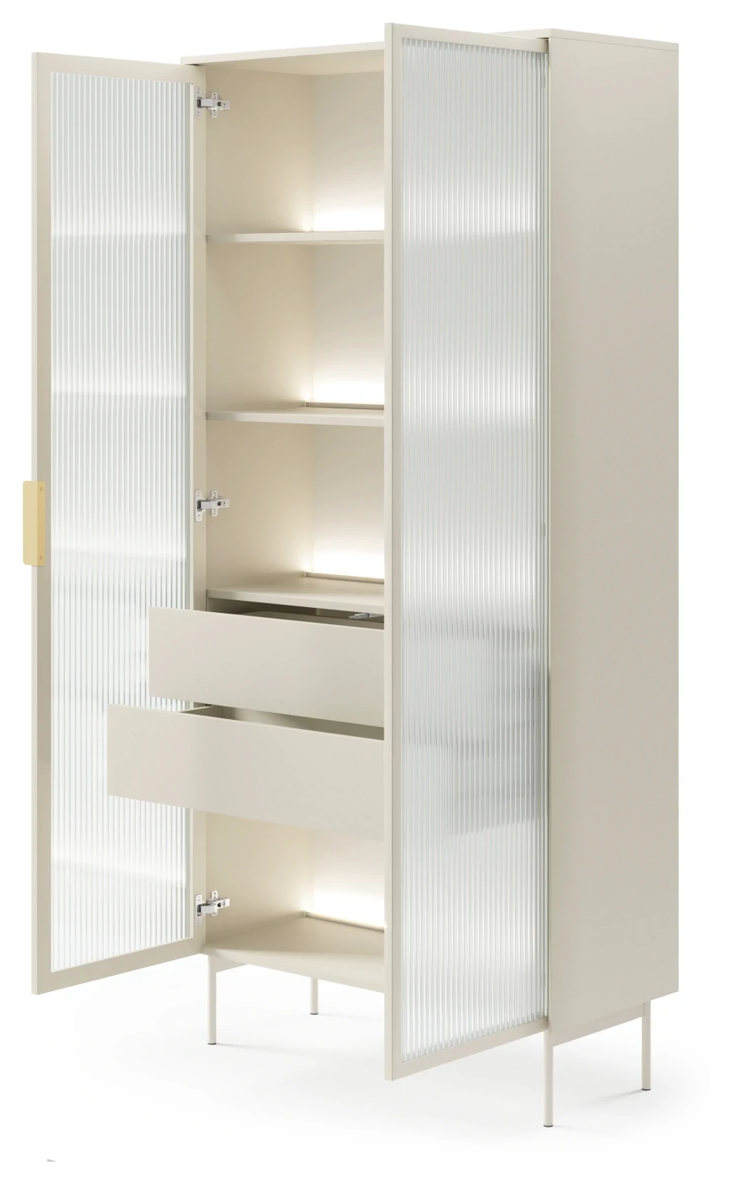 Witryna wysoka Lumi przeszklone fronty z oświetleniem LED 91 cm kaszmir