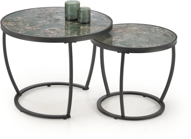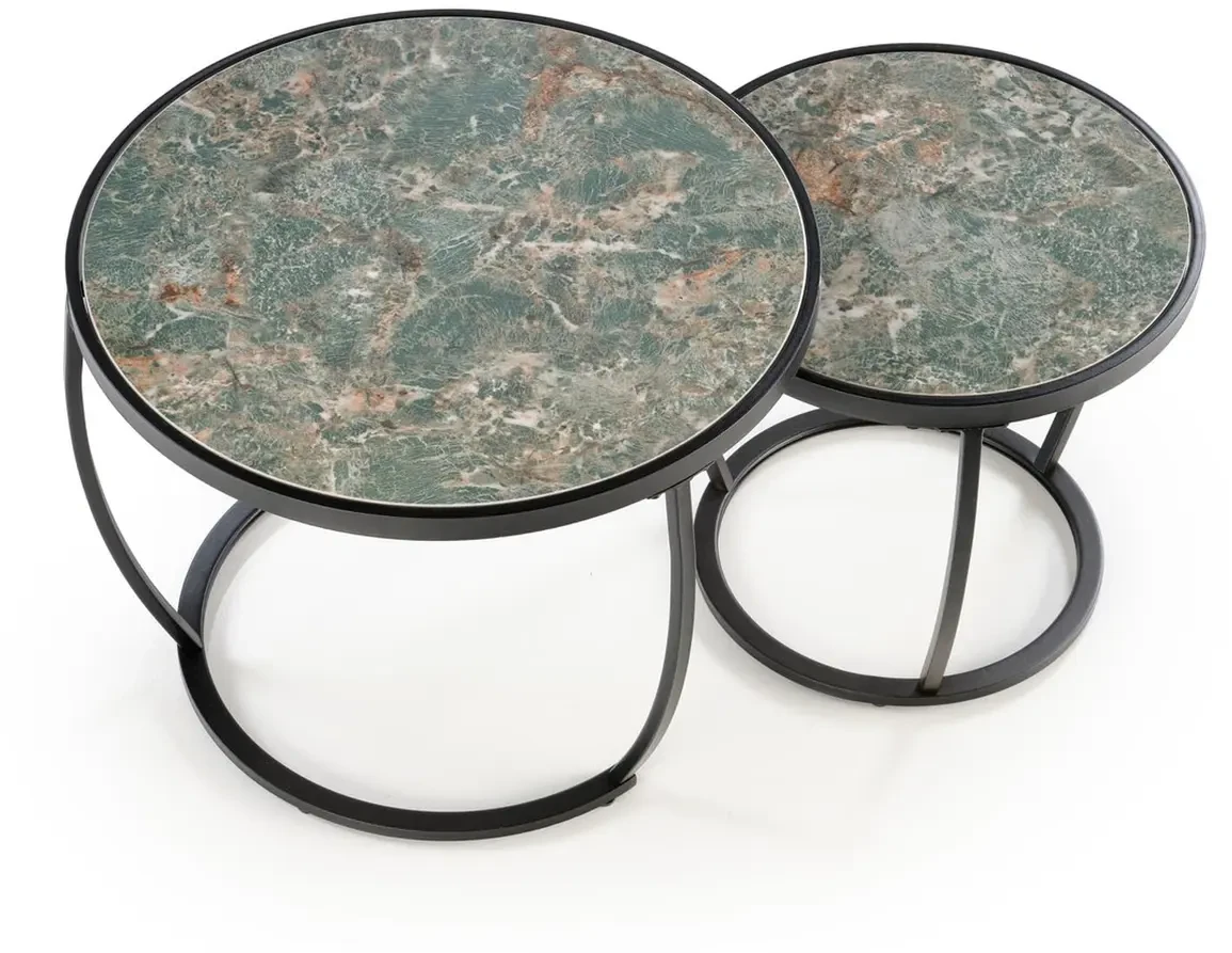 Zestaw 2 ław stolików kawowych Ines zielony marmur / czarny