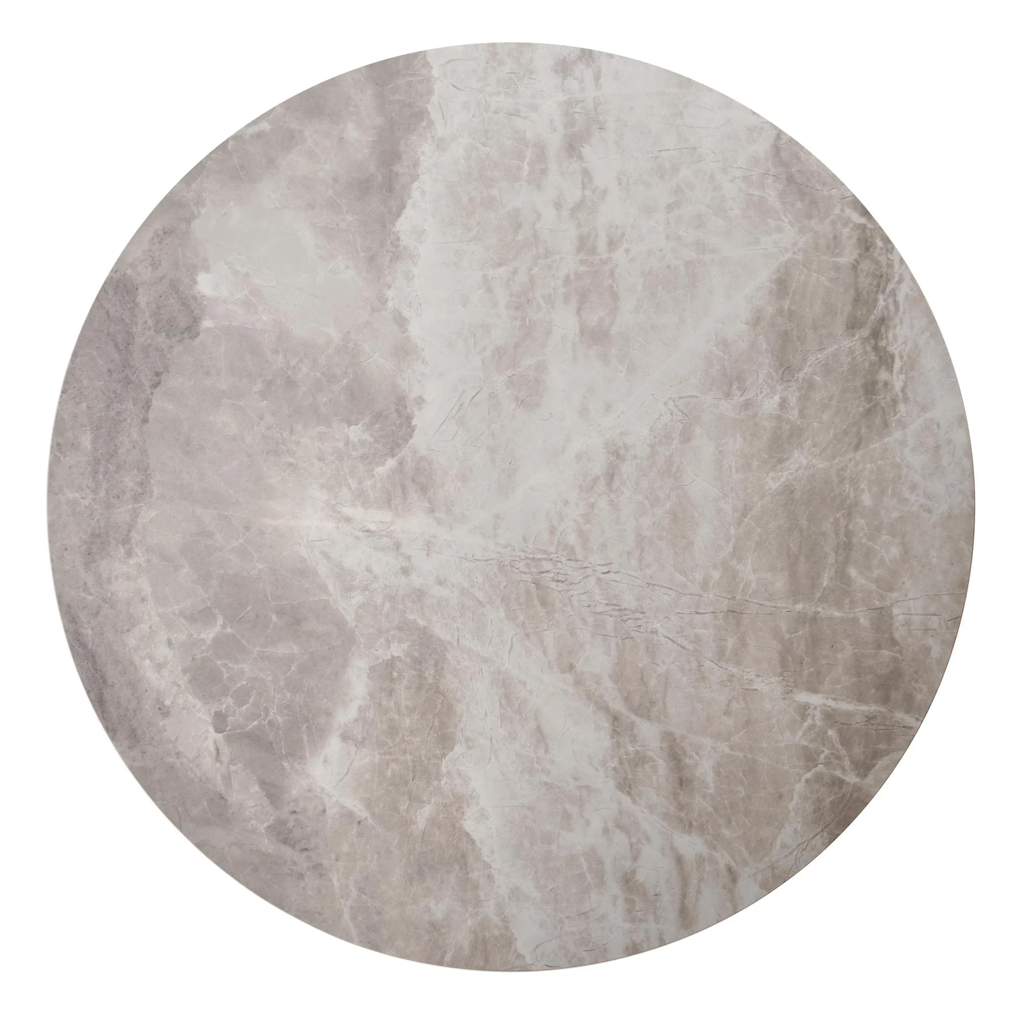 okrągłe blaty w wykończeniu popielaty marmur z połyskiem