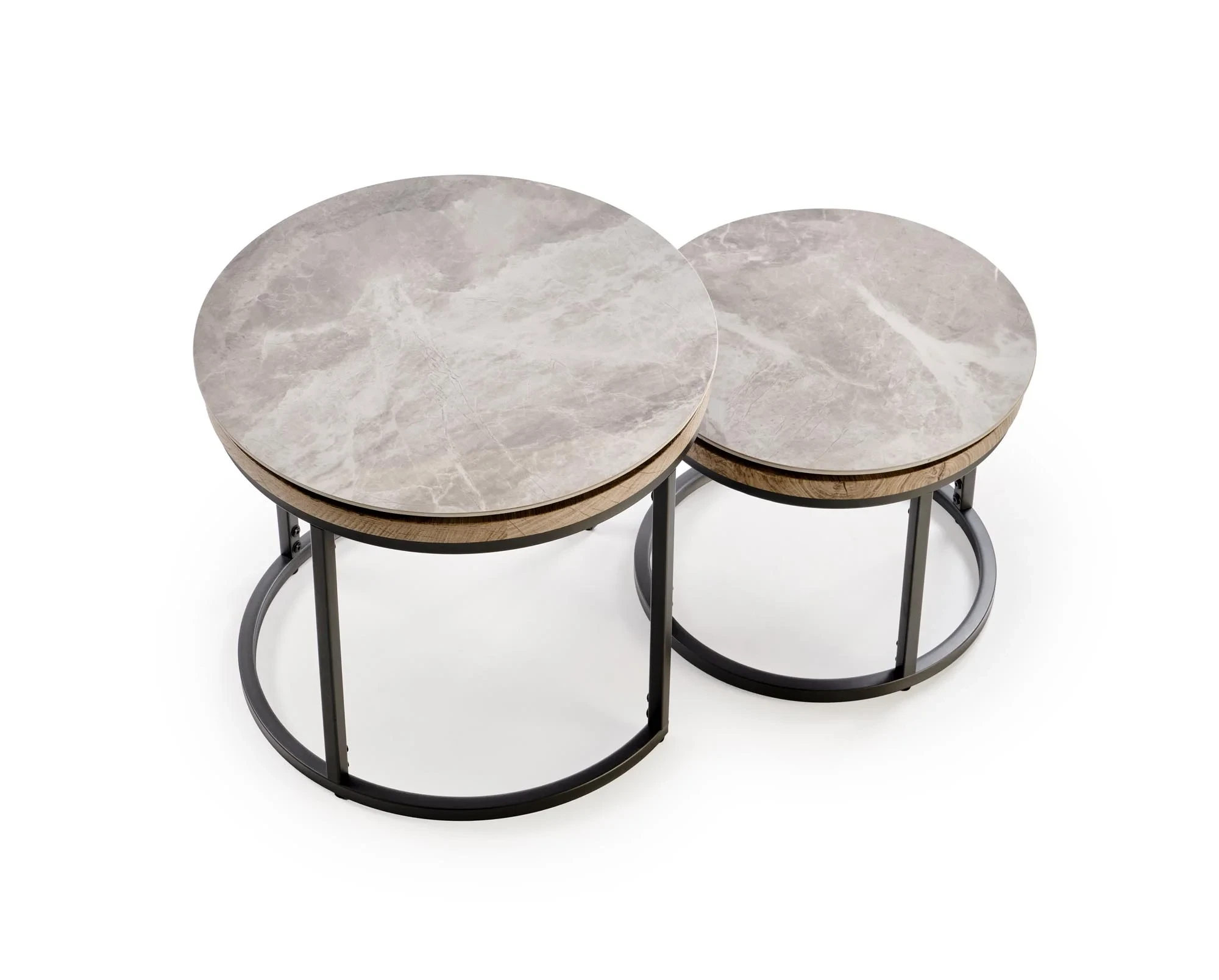 Zestaw 2 ław stolików kawowych ITAKA okrągłe popielaty marmur/grafitowy