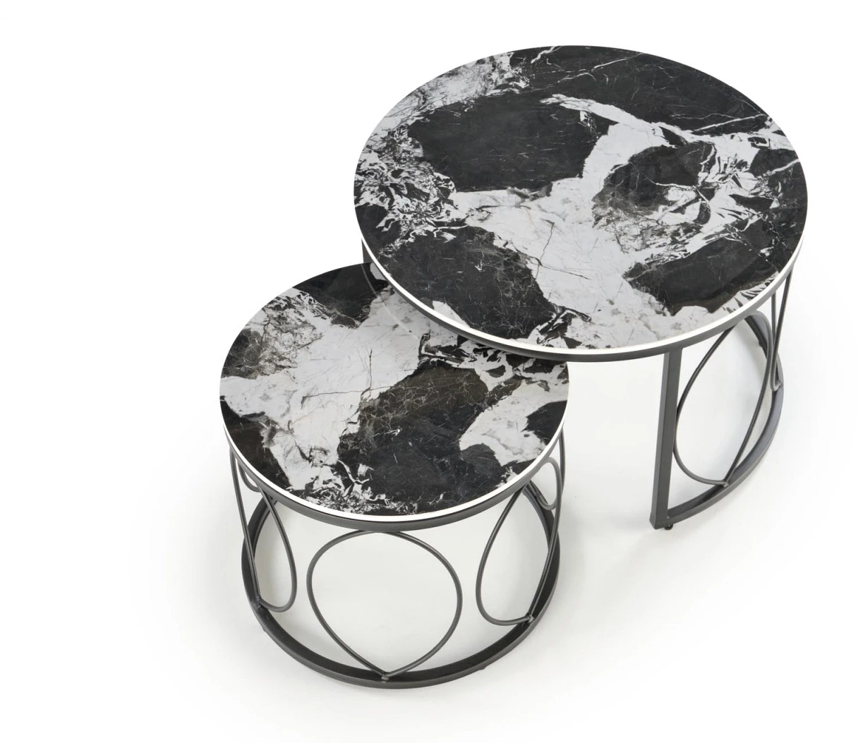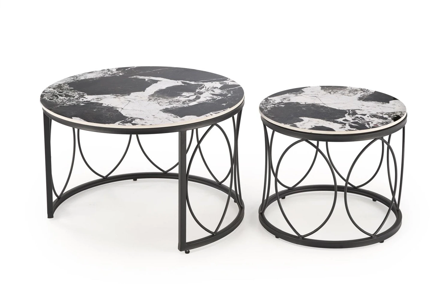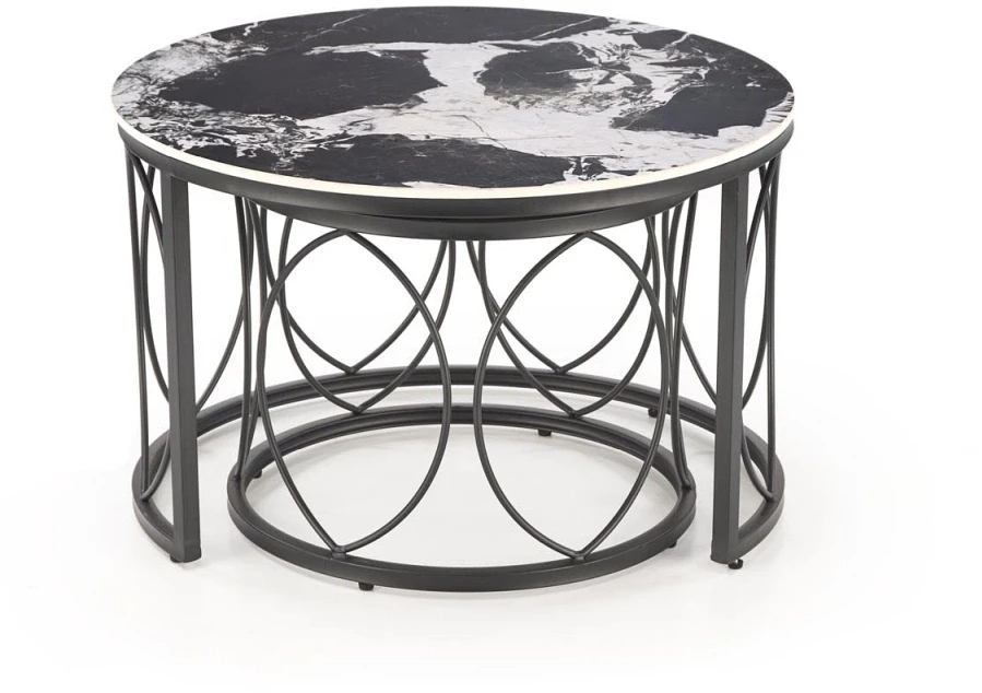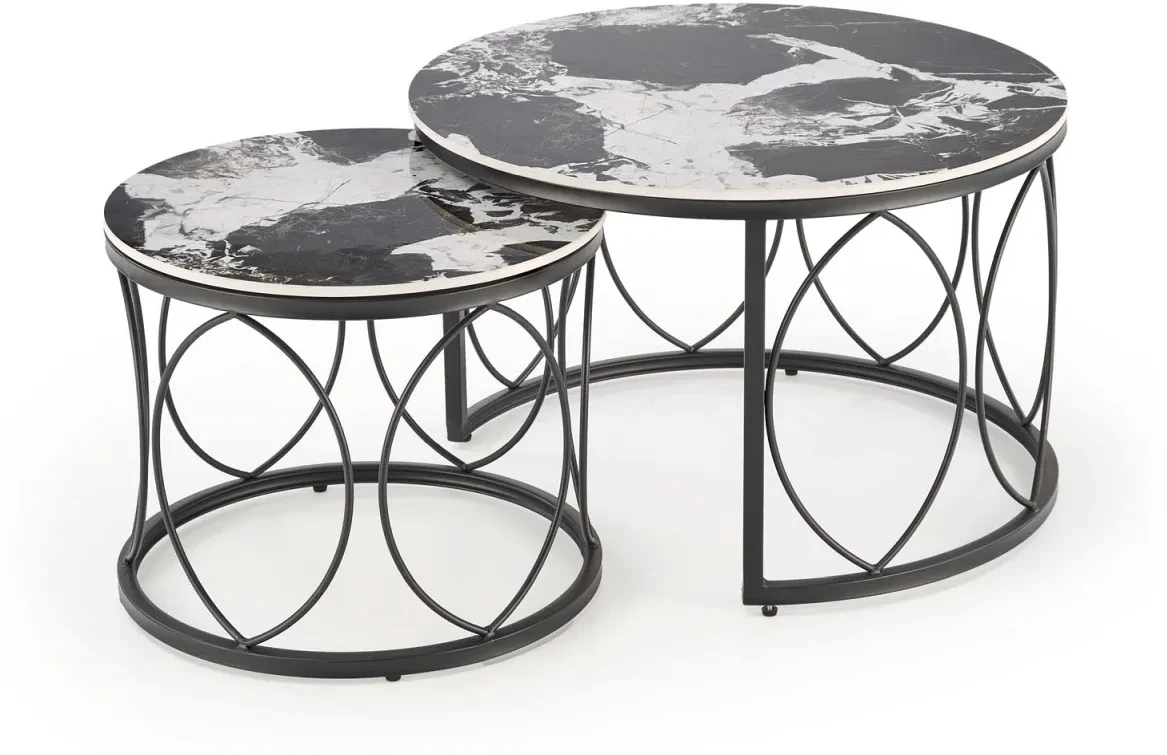Zestaw stolików kawowych ALEXANDRA to doskonały wybór dla osób poszukujących stylowego i funkcjonalnego akcentu do swojego salonu. Połączenie designerskiej formy z ponadczasową kolorystyką czarnego marmuru i stali tworzy wyjątkowy efekt wizualny, który przyciąga uwagę i podkreśla charakter wnętrza. Stoliki różnią się wysokością i średnicą, dzięki czemu można je dowolnie ustawiać – razem lub osobno – w zależności od potrzeb i okazji. Wyjątkową zaletą tego zestawu jest możliwość wsuwania mniejszego stolika pod większy, co pozwala zaoszczędzić przestrzeń bez rezygnacji z funkcjonalności. Blat wykonany ze spieku wyróżnia się odpornością na zarysowania i wysoką temperaturę, a malowana proszkowo stalowa konstrukcja zapewnia stabilność i trwałość. Ten elegancki zestaw to idealna propozycja zarówno do nowoczesnych, jak i klasycznych aranżacji, gdzie liczy się estetyka i praktyczność.