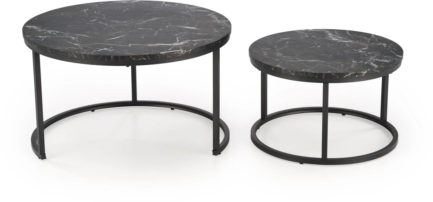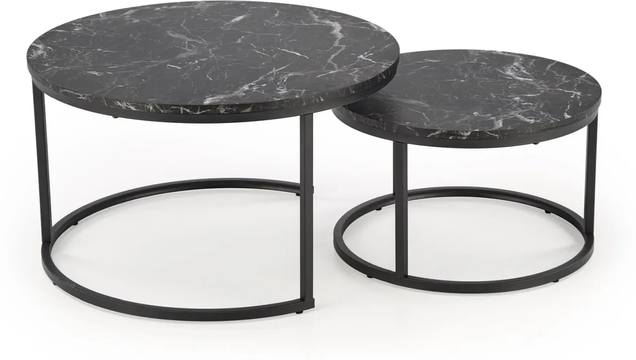 Zestaw 2 stolików kawowych Java okrągłe do salonu czarny marmur/czarny